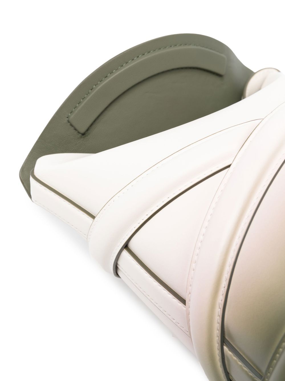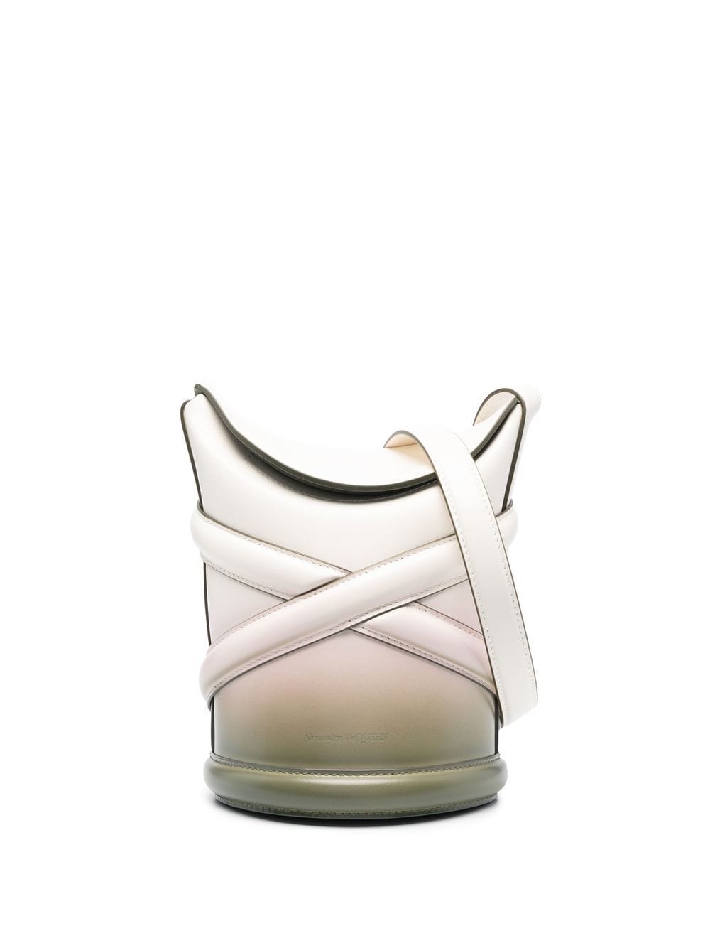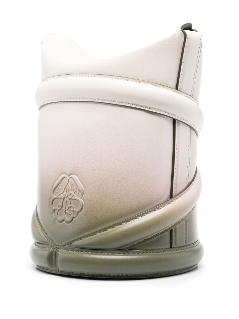 debossed-logo bucket bag from Alexander McQueen featuring calf leather, gradient effect, debossed logo to the front, single shoulder strap, main compartment and white/green.