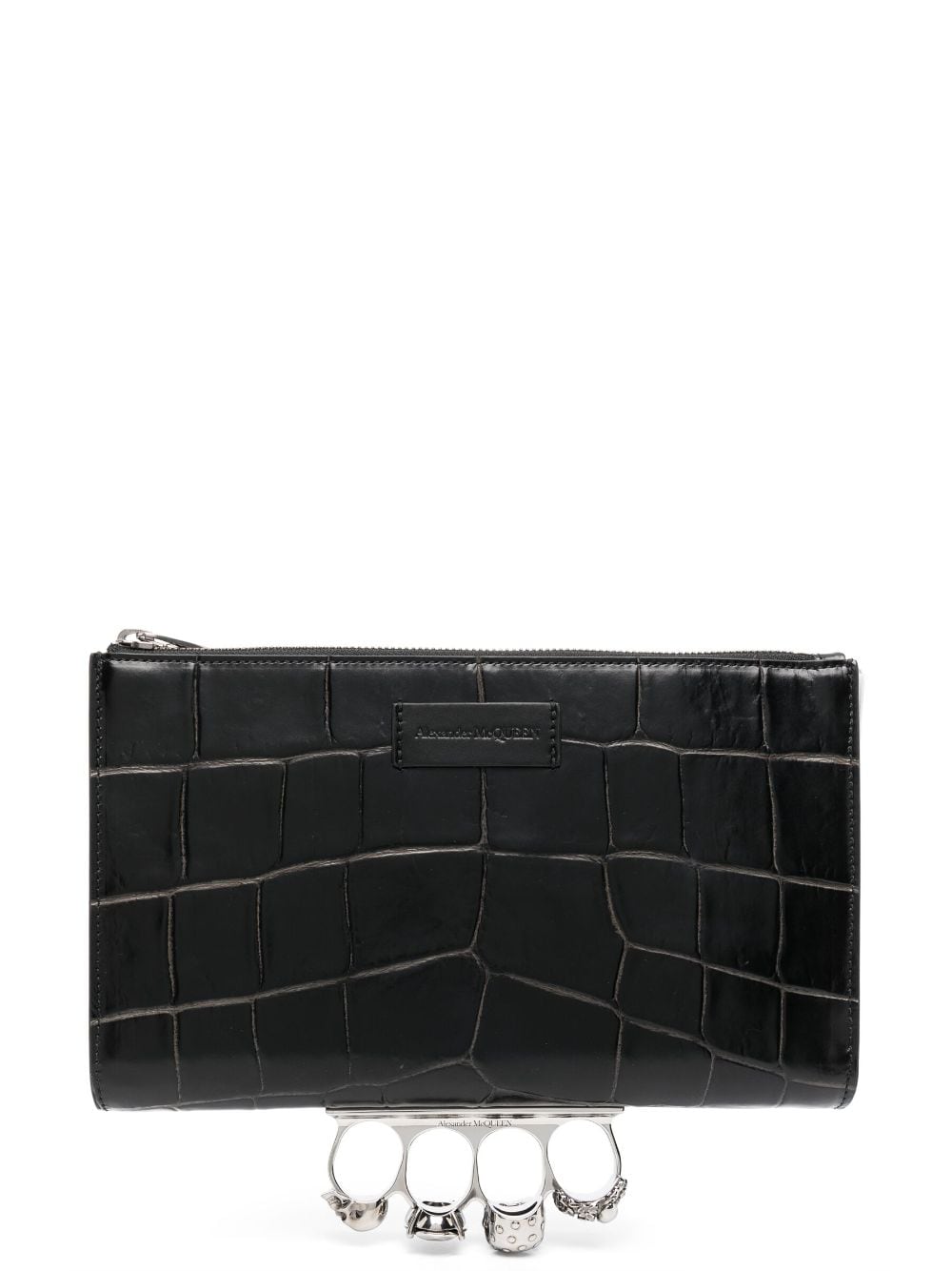 Be the first to review “Alexander McQueen Four Ring crocodile-effect clutch”