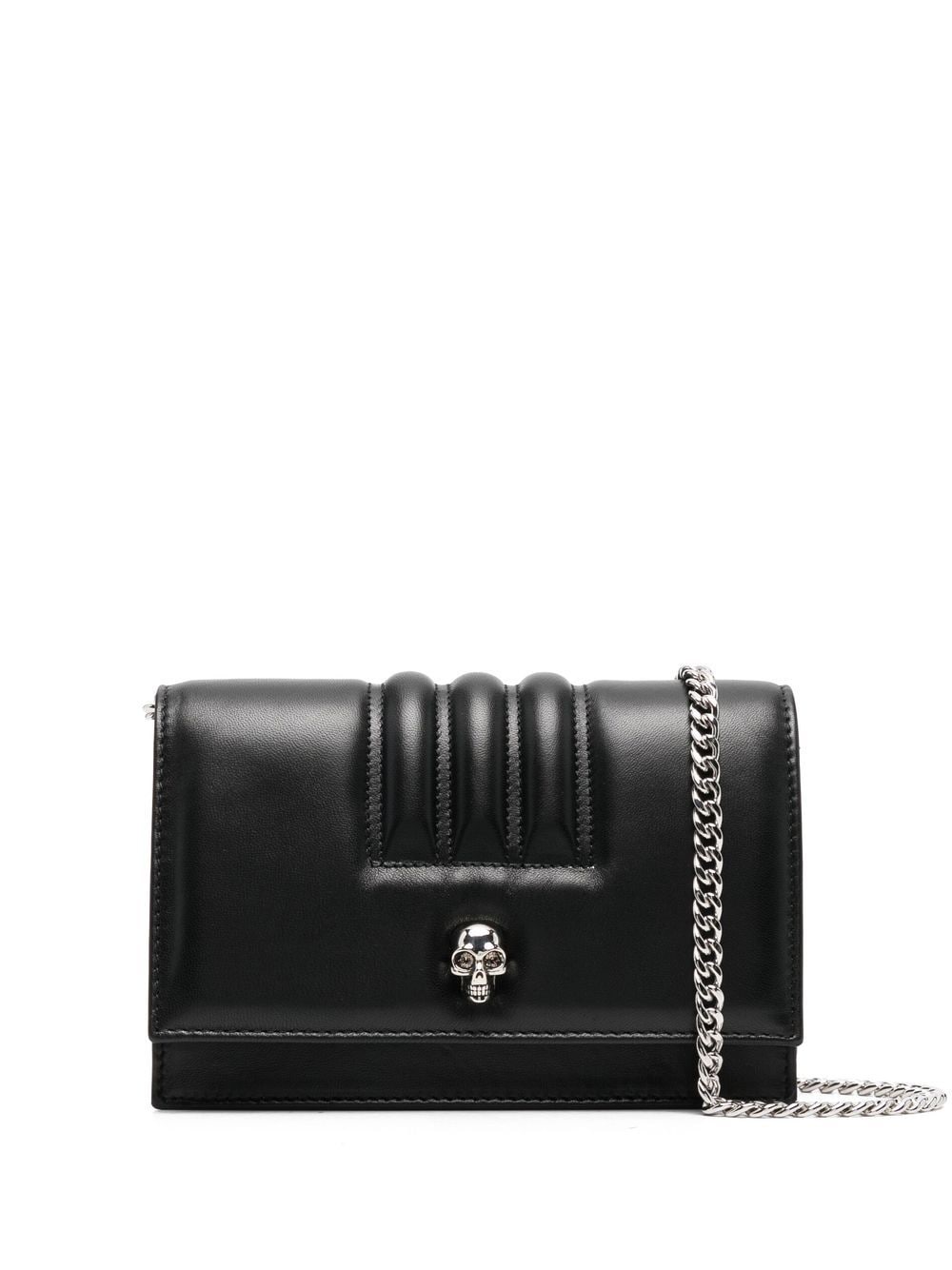 Jewelled Skull shoulder bag from Alexander McQueen featuring black, calf leather, skull charm, silver-tone hardware and foldover top.