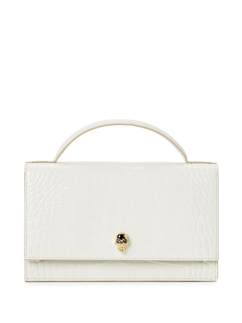 Alexander McQueen’s signature Skull bag puts the brand’s signature Punk aesthetic on a classic handbag silhouette, thanks to the signature Skull plaque positioned at the front, which gives the accessory its name. This version boasts a top handle and detachable strap, allowing for a multitude of wearing possibilities.