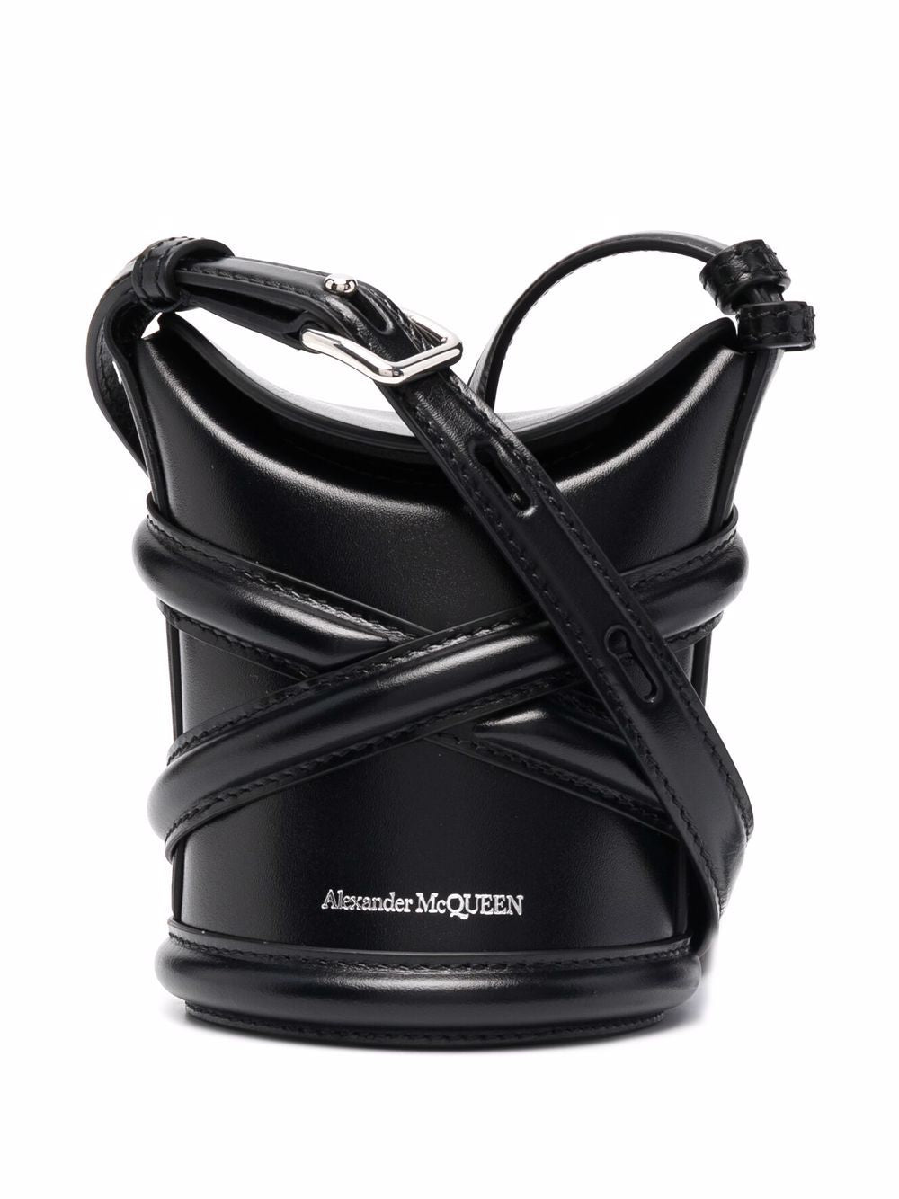 Alexander McQueen plays with volume with the introduction of the micro The Curve bag. The black leather accessory boasts tonal strap detailing, heavily influenced by the brand’s use of harnesses.