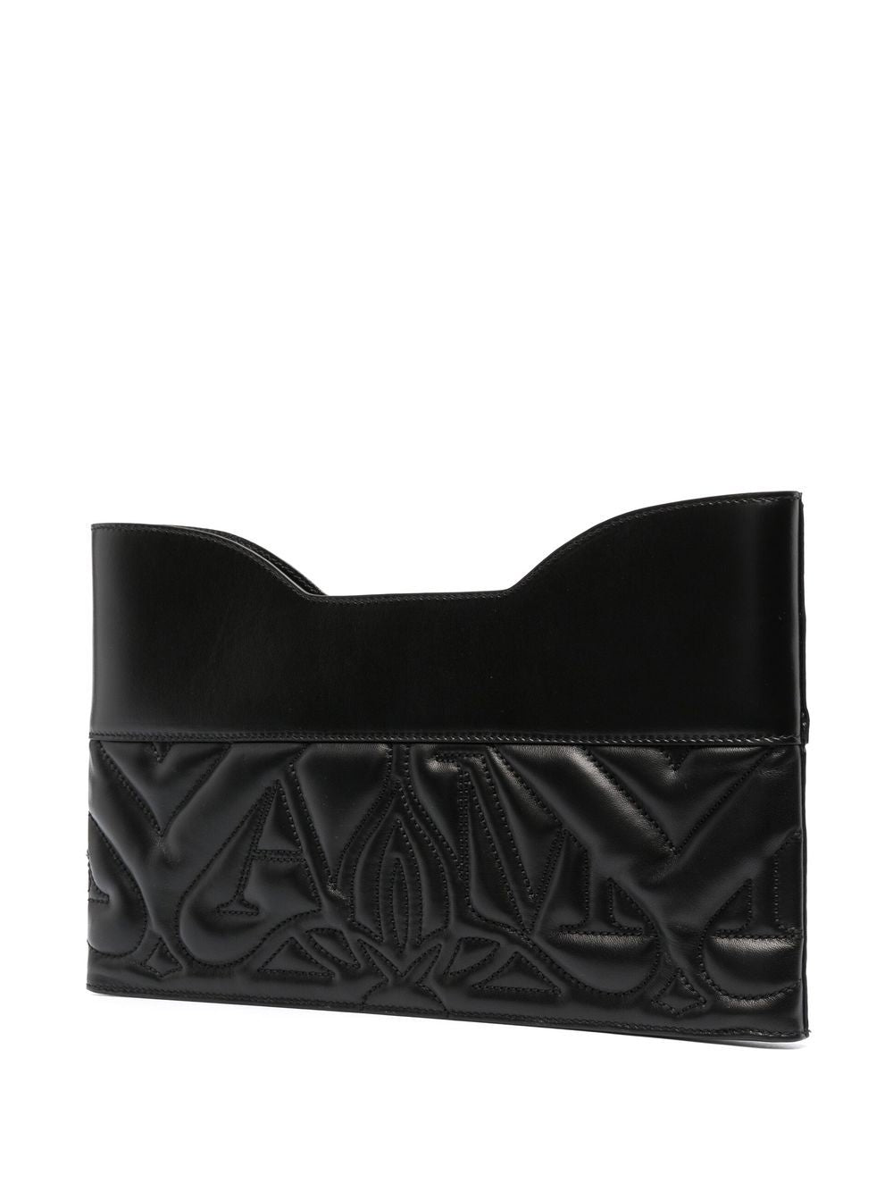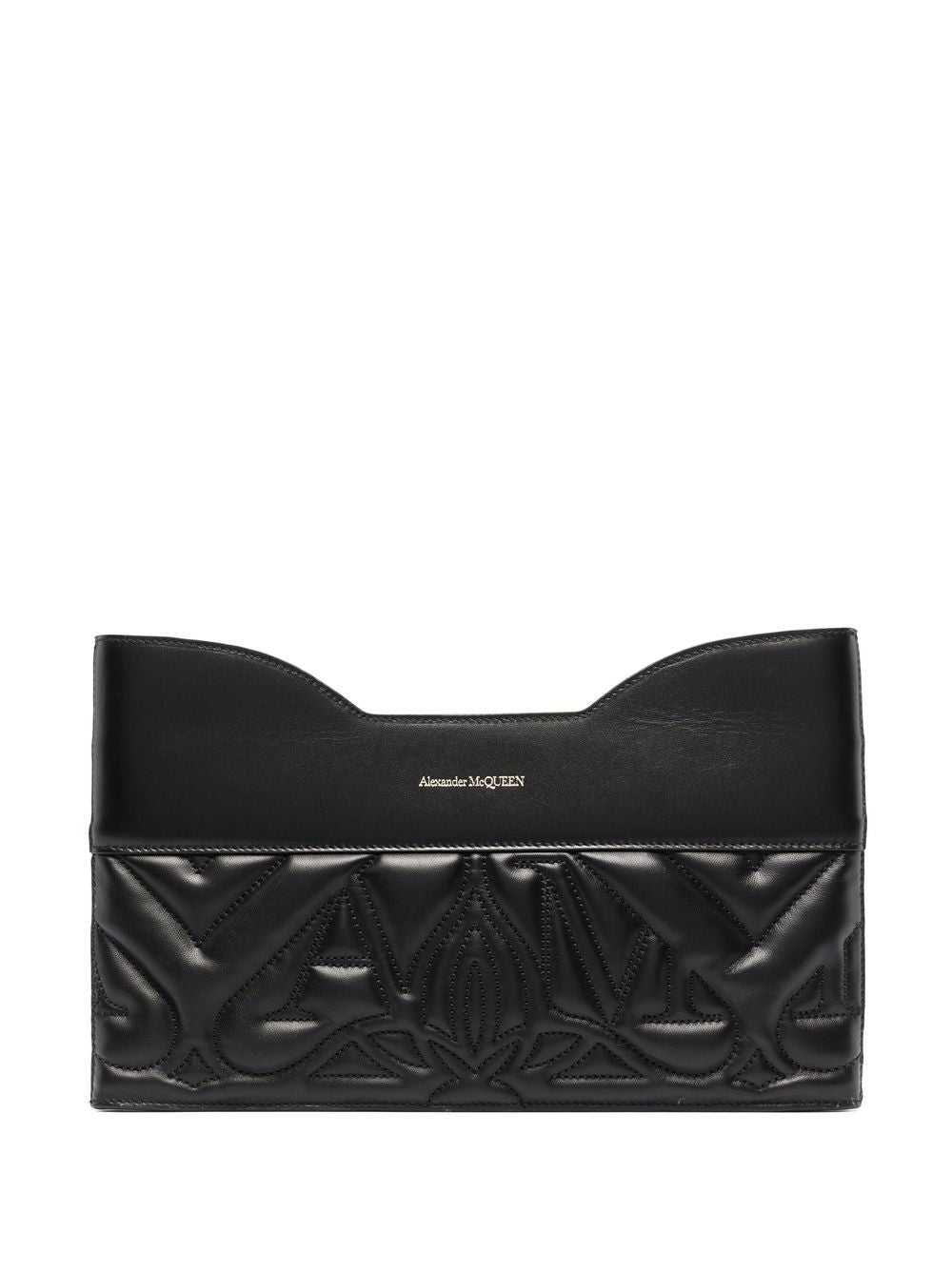 quilted leather clutch bag from Alexander McQueen featuring quilted, gold-tone logo lettering, main compartment, black and leather.