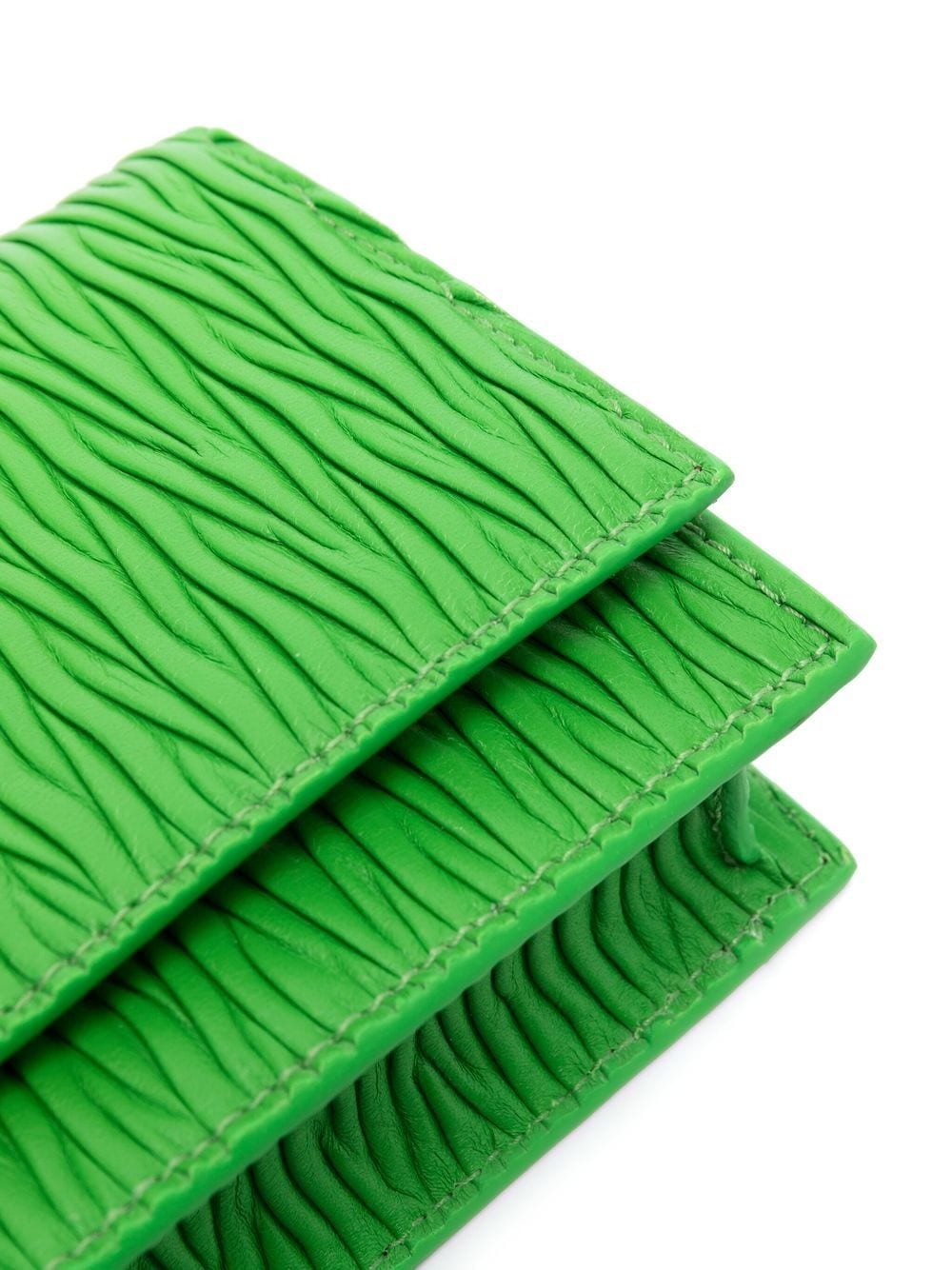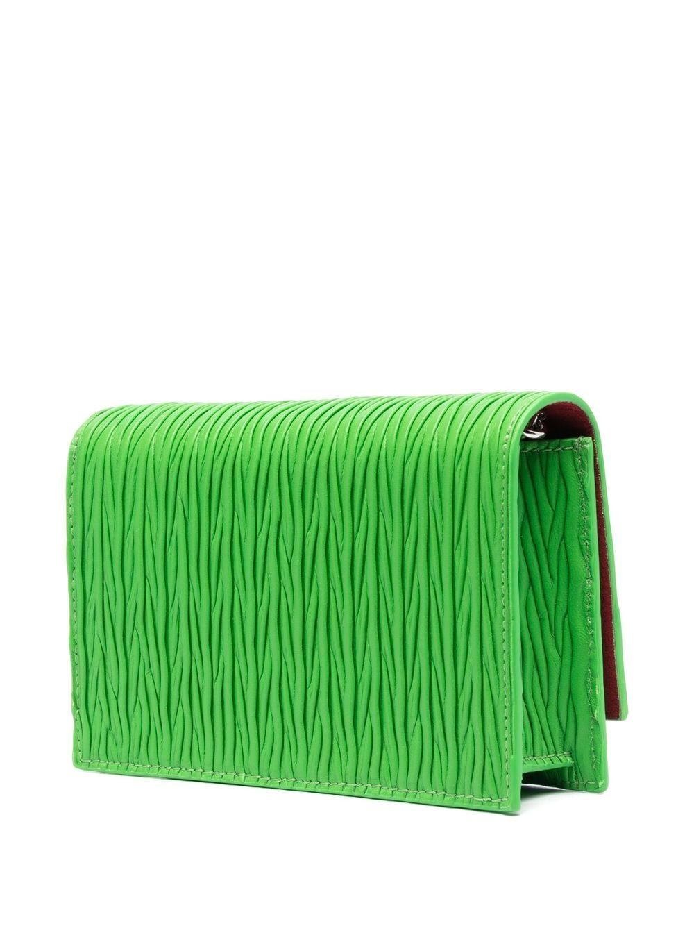 skull-stud pleated leather bag from Alexander McQueen featuring calf leather, fully pleated, skull stud detailing, chain-link shoulder strap, silver-tone hardware, foldover top with magnetic fastening, main compartment, internal card slot and acid green.