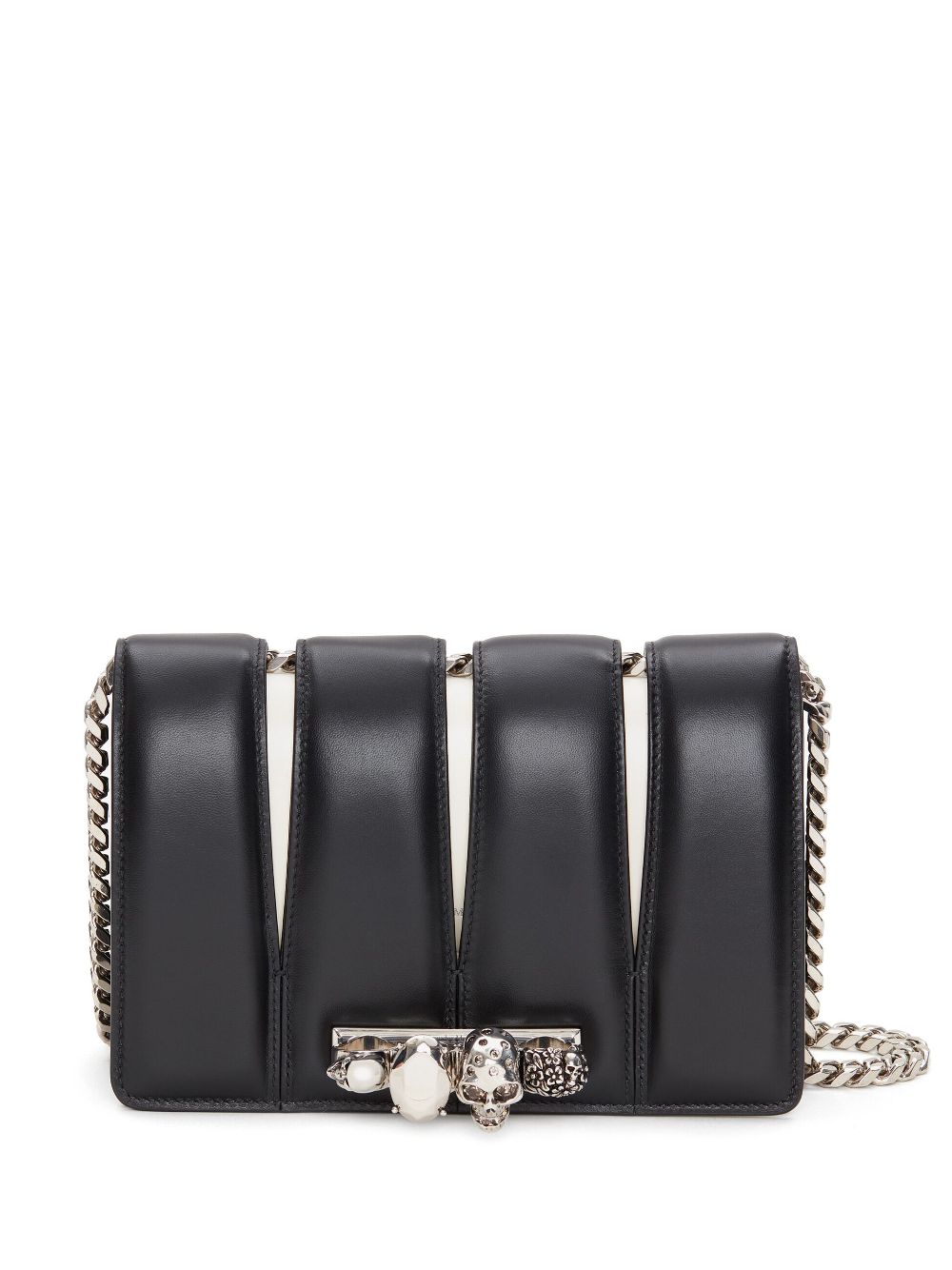 Alexander McQueen’s The Slash crossbody bag is infused with the label’s gothic-inspired aesthetic: it’s so-named due to the tailoring-inspired cut-outs on the front flap. It’s embellished with signature four-ring hardware sporting Swarovski-encrusted skulls, engraved florals and a faceted gem.