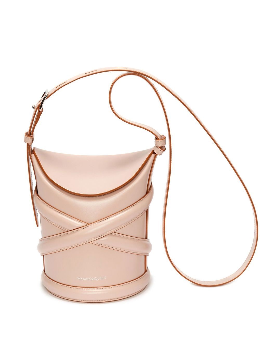 The most beautiful curve on a woman’s body is on her shoulder. That’s where you’ll find this Alexander McQueen bag and its unique bucket design. The smile is important, too, we must say.