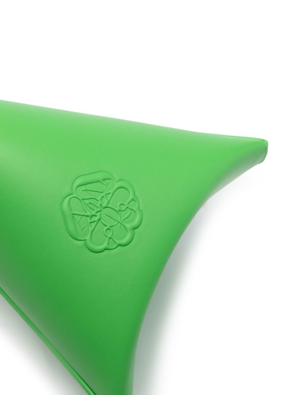 The Curve pouch from Alexander McQueen featuring silver-tone hardware, logo stamp to the front, logo stamp to the rear, top zip fastening, main compartment, wrist strap, green and calf leather.