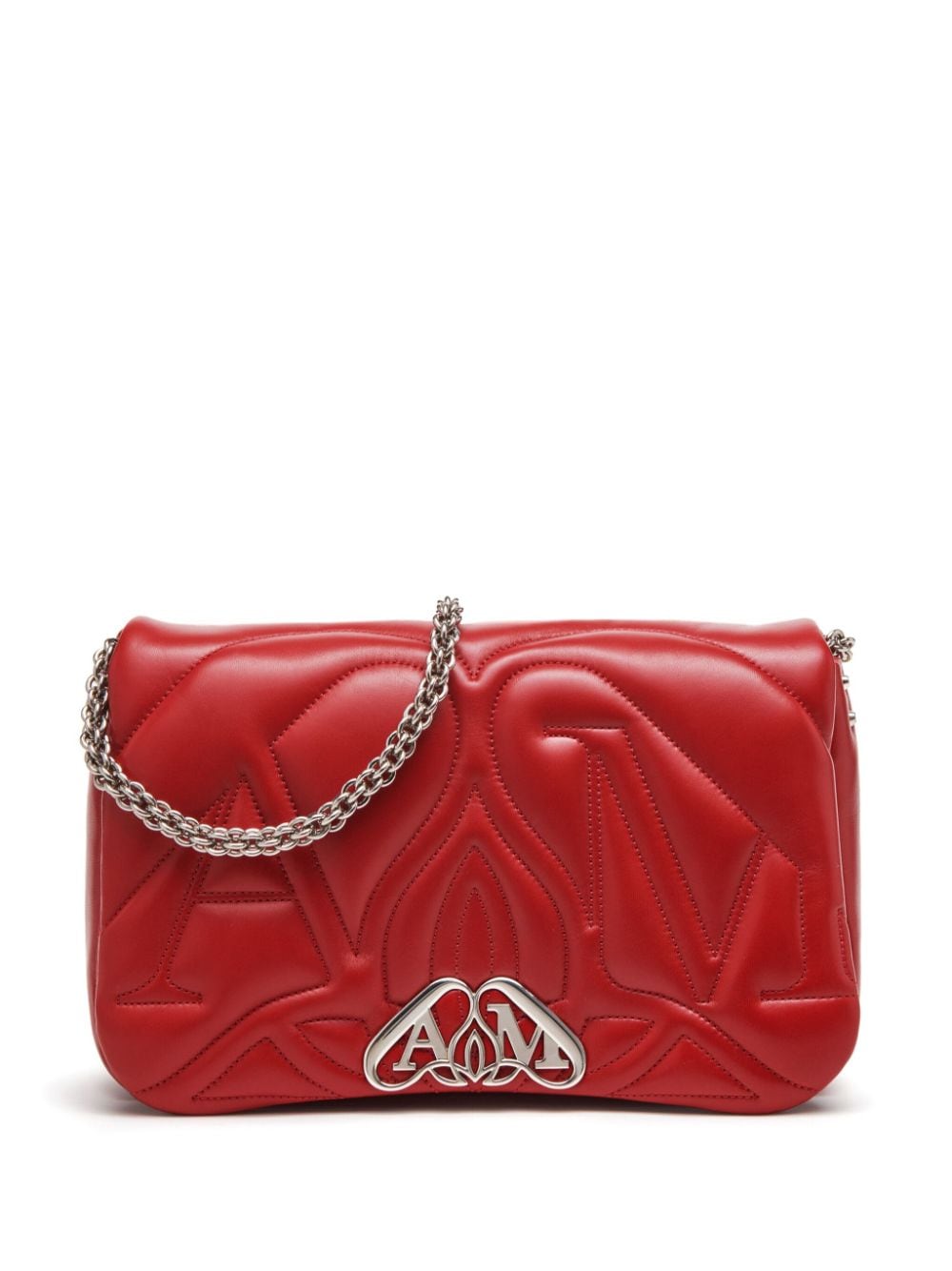 Alexander McQueen infuses this shoulder bag with one of its most famous House Codes: the Seal. Intricately intertwining the British designer’s initials, it is seen in a silver-tone plaque and softly quilted into the leather.