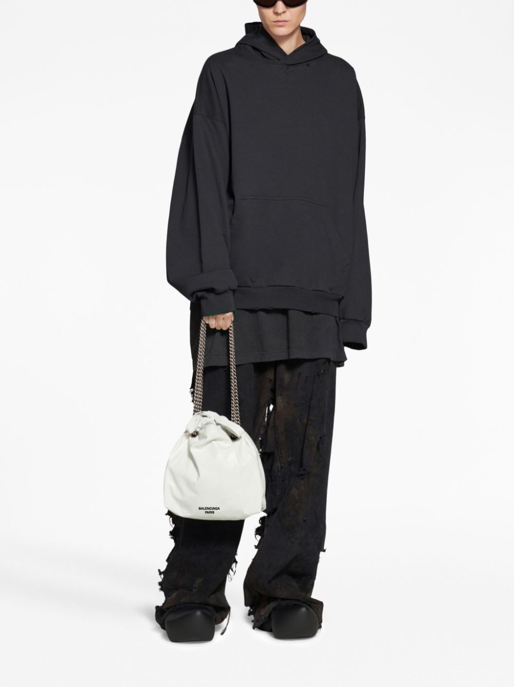 Crafted from white leather, this tote bag from Balenciaga features a silver-tone chain-link shoulder strap and is made recognisable by logo lettering to the front of the design.