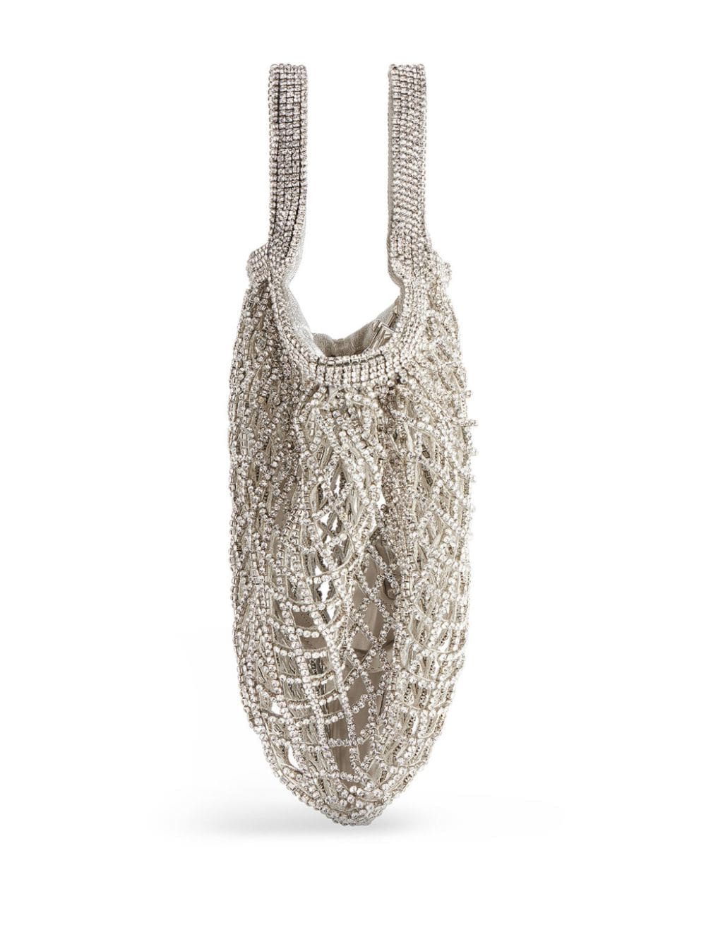 This Balenciaga tote bag boasts a mesh construction that’s illuminated with light-catching rhinestones.