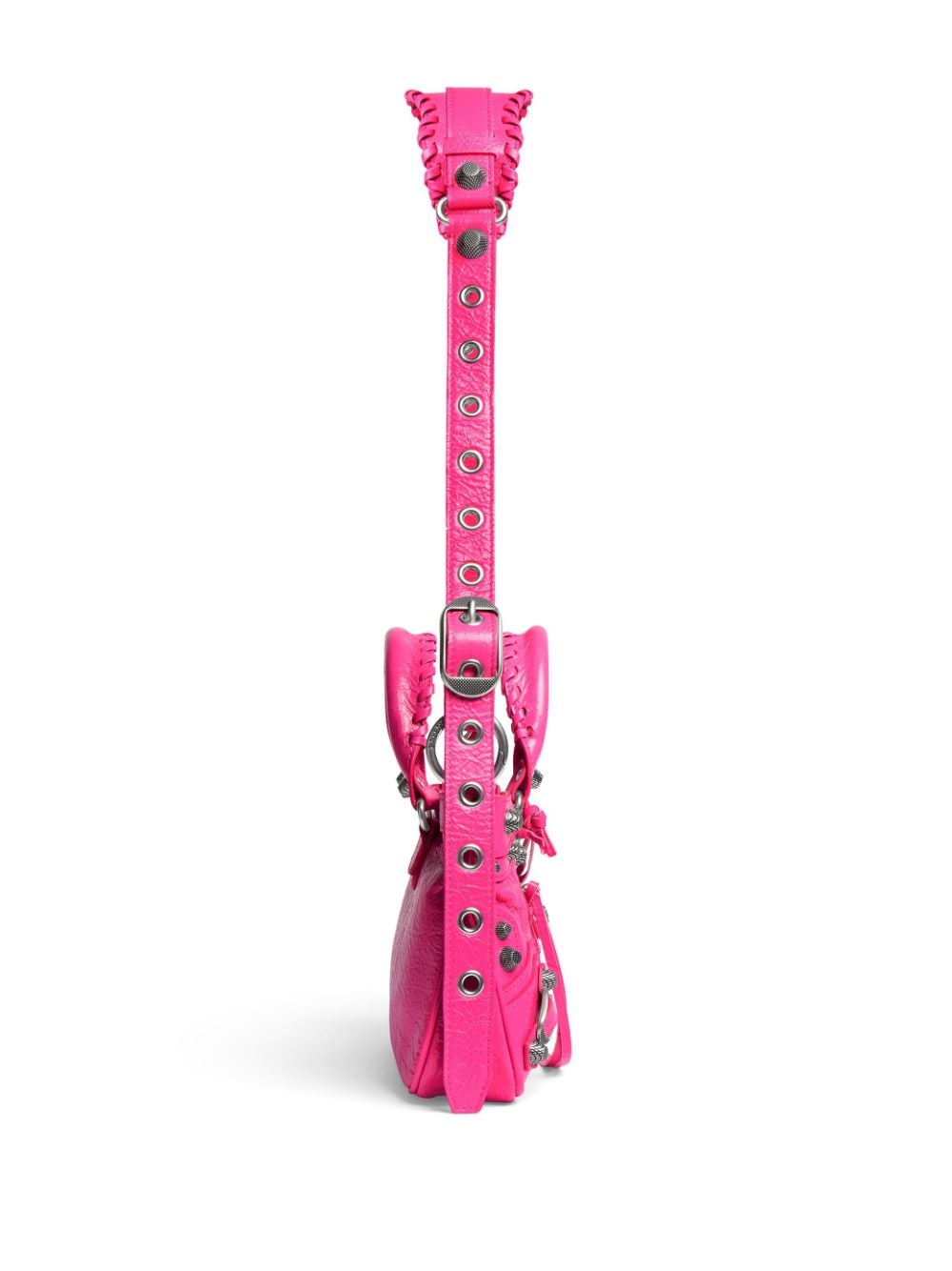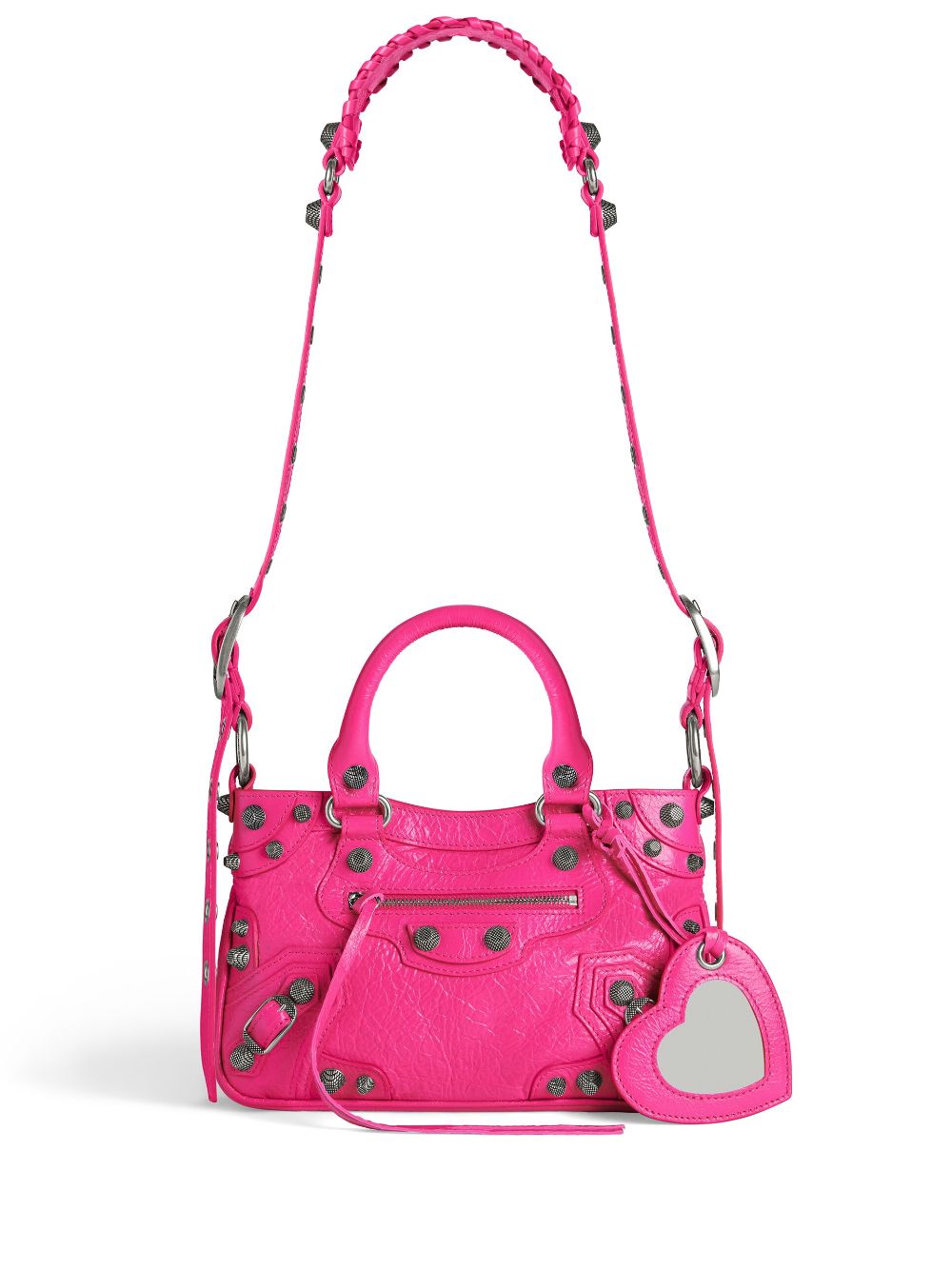 First appearing in Balenciaga’s pre-Fall 2021 show, Balenciaga presents the iconic Neo Cagole tote bag in a bright pink hue. Crafted from smooth leather, it features elements from the Neo Classic silhouette, including decorative buckles and flat studs. It includes the signature heart-shaped mirror and zipped cardholder synonymous with the style.
