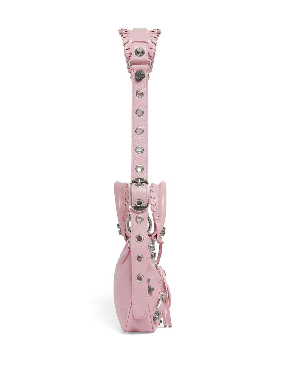 Taking its name from the French stereotype describing a cool and confident girl from Marseille, Balenciaga’s Le Cagole bag adopts the maximalist aesthetic of the character in its bold design. This small iteration is accented with studs and eyelets and comes with a heart-shaped mirror and adjustable shoulder strap.