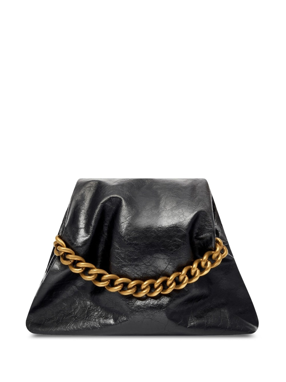 Balenciaga’s Puffer shoulder bag gets its name from its soft, puffy outside. It’s crafted from crinkled calfskin and held with a gold-tone chain shoulder strap. The tubular handle showcases the brand’s unique aesthetic.