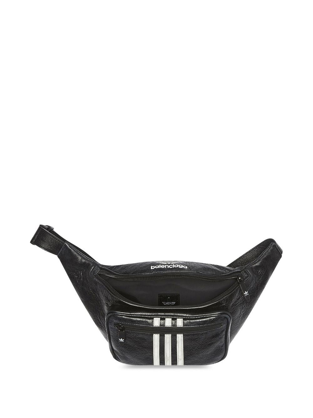 Balenciaga taps adidas to design this belt bag. Crafted from cracked lambskin, it’s accented with the sportswear brand’s trefoil logo above the ‘Balenciaga’ signature. Notice adidas’ tri-stripe pattern at the rear – a rsecond recognisable signature.
