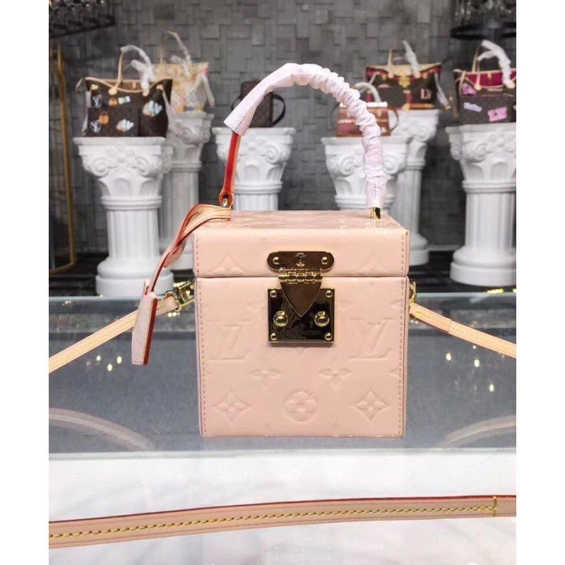 updates its cube vanity case with the Bleecker Box handbag in polished Monogram Vernis patent leather. A natural leather top handle and iconic Slock finish this feminine reinterpretation of the House historic trunk designs. The removable adjustable strap allows hand or crossbody carries