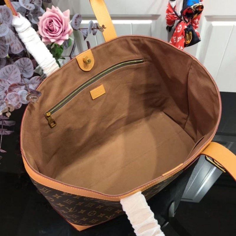 Large enough to fit a laptop, magazines, and a couple of books, the Cabas Voyage tote for men in iconic Monogram canvas and natural leather is accessorized with Virgil Abloh signature goldtone chain and safety pin. Inside there a zipped flat pocket that can hold an iPad and a duo flat pocket for phones.