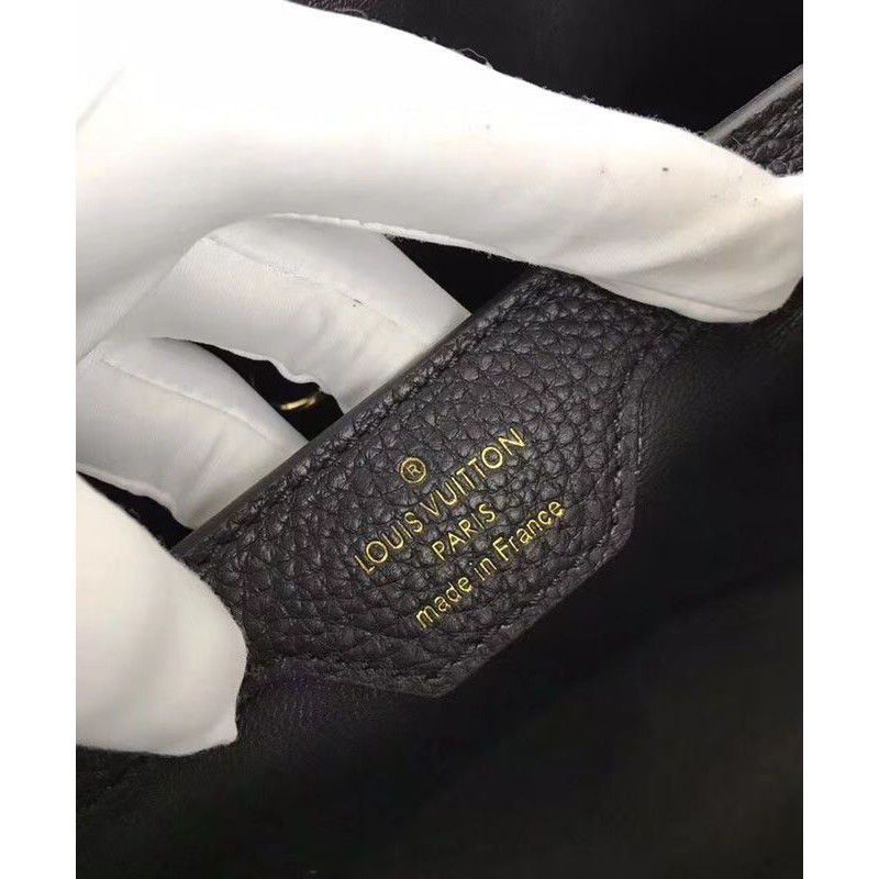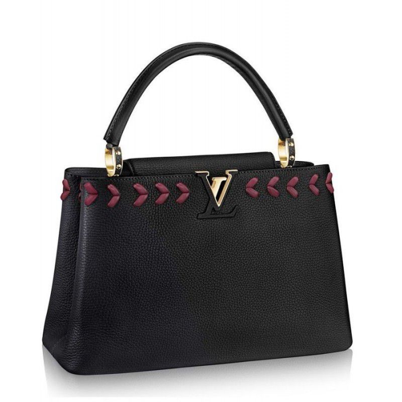 The lambskin braids woven into the top of this Capucines MM, together with the contrasting Taurillon leather, bring a delicate twist to this iconic handbag.Taurillon leather with lambskin leather chevron