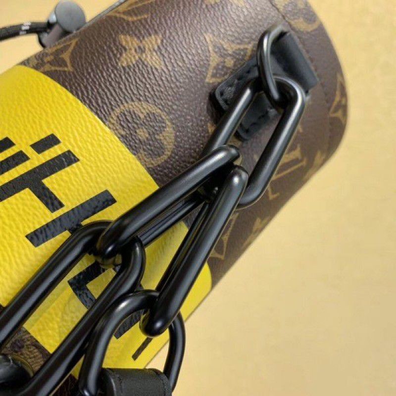 The Chalk Nano bag showcases the distinctive Monogram pattern alongside contemporary practical details. With a supple shape inspired by climbers chalk bags, this item can be comfortably worn on the shoulder or across the body. It is decorated with a sleek chain and functional carabiner fastening on the strap, which are signatures of Virgil Abloh is SpringSummer 2019 designs.