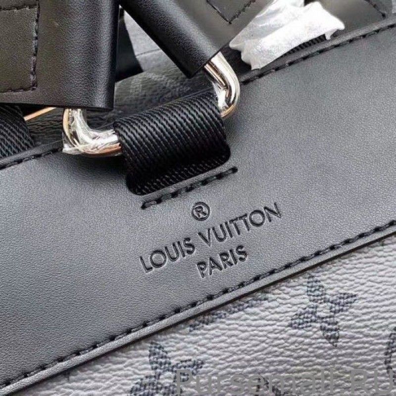 The Christopher PM backpack reinvents the rugged spirit of a hiking pack in masculine Monogram Eclipse canvas and Monogram Eclipse Reverse canvas with black leather trim. The grays and blacks are complemented by the silver highlights of the buckles and zips. Multiple pockets and a leather flap with a pressstud keep belongings safe.