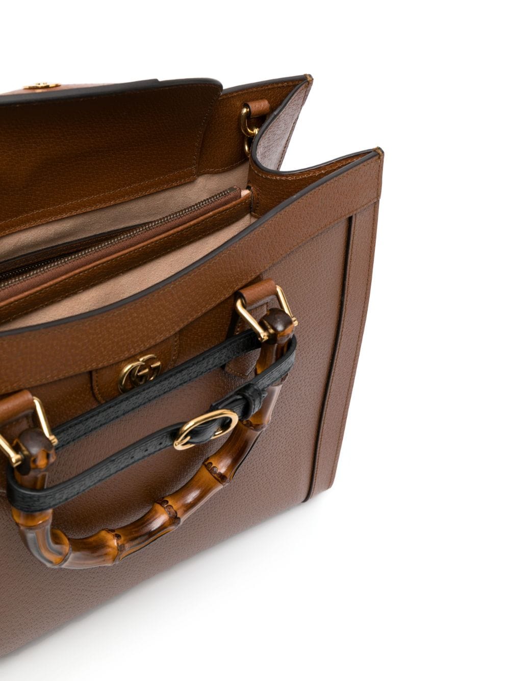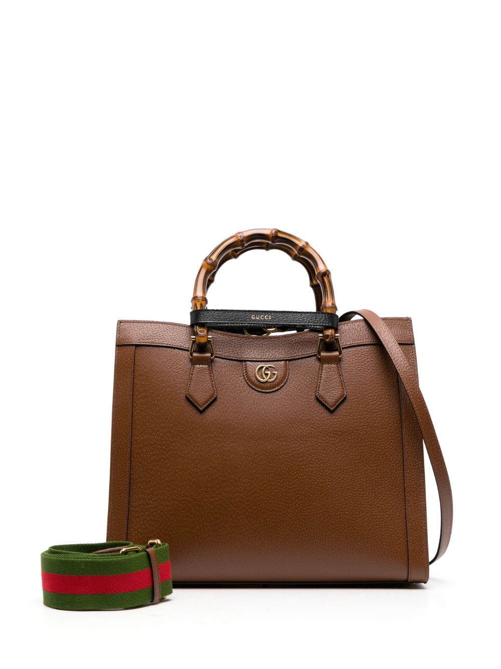 First used in the post-war era when traditional materials were hard to come by, bamboo has become one of Gucci’s signatures. Crafted from leather, the Diana tote bag is finished with the GG logo plaque to the front.