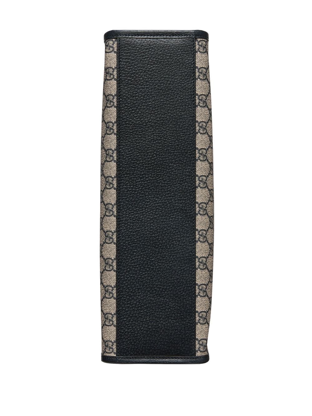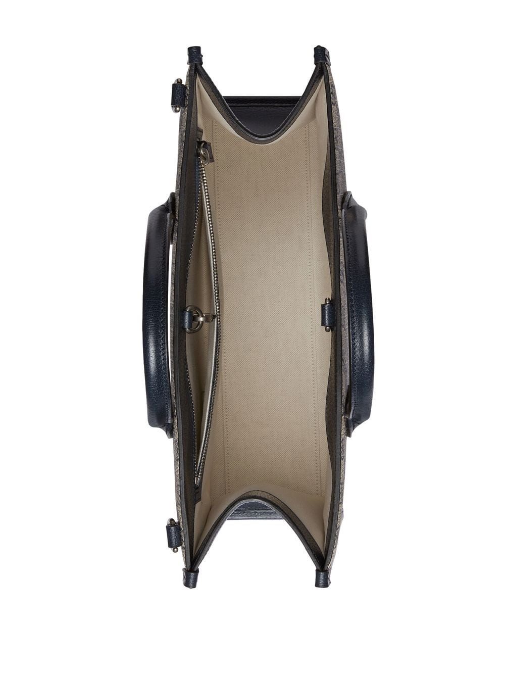 Gucci brings together different elements of the house’s heritage to create an instantly recognisable and refined accessory. Part of the SS22 collection, this tote bag features an Interlocking G logo patch at the front, classic GG canvas and dark blue contrasting leather trim.
