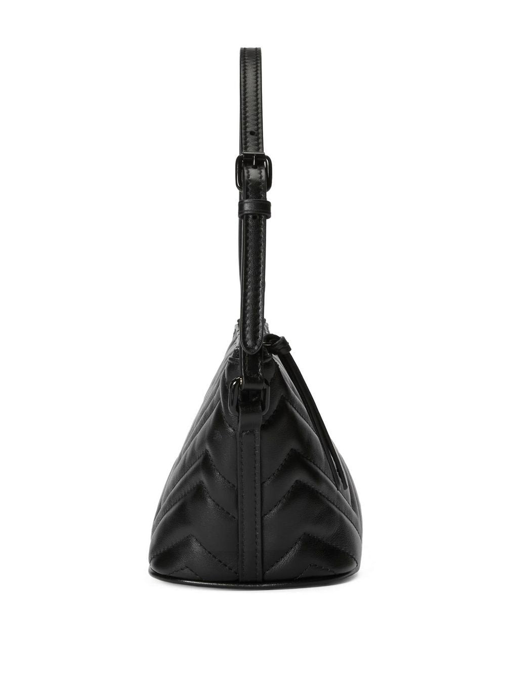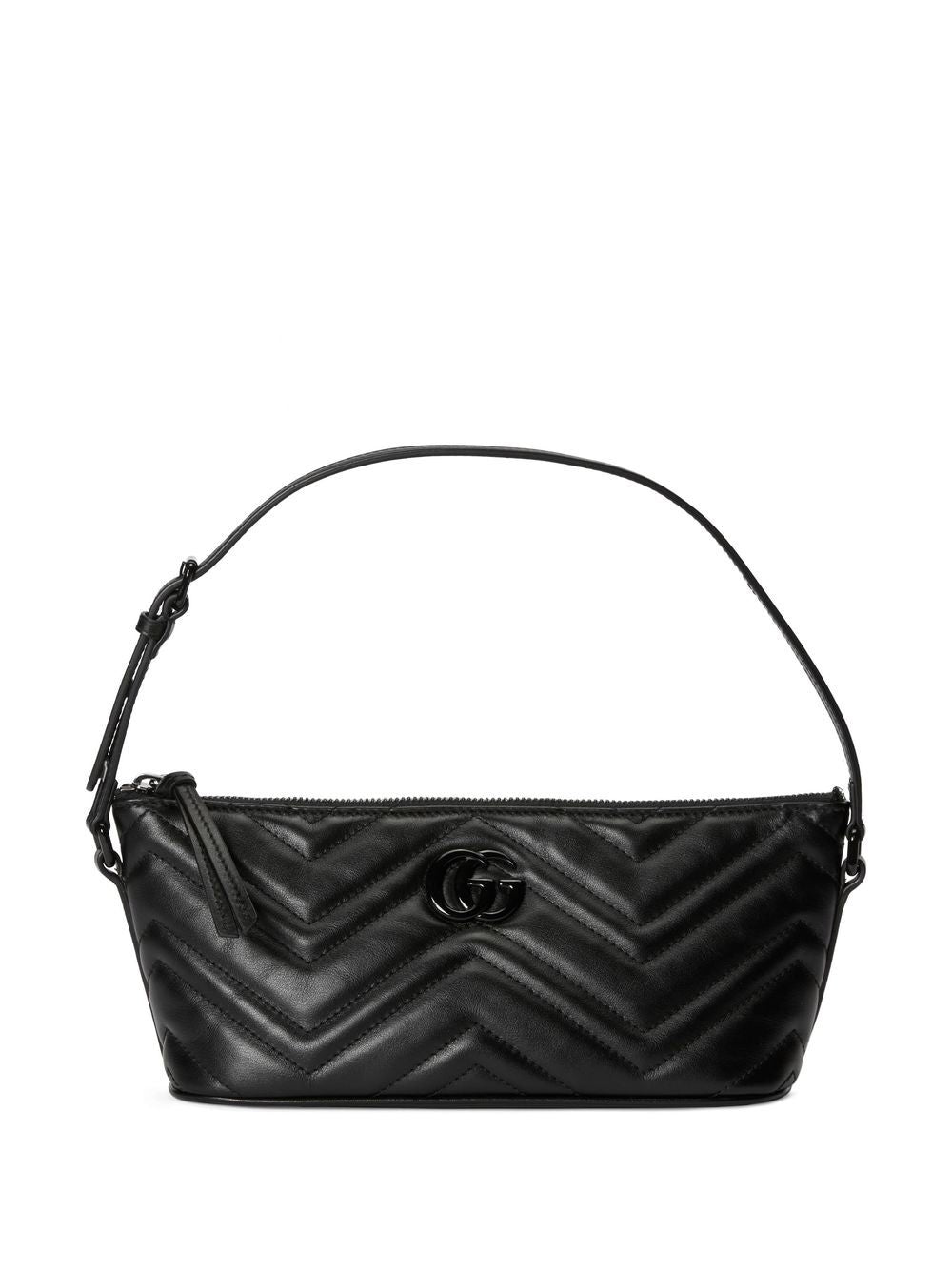 GG Marmont matelassé shoulder bag from Gucci featuring black, matelassé effect, top zip fastening, adjustable shoulder strap and leather.