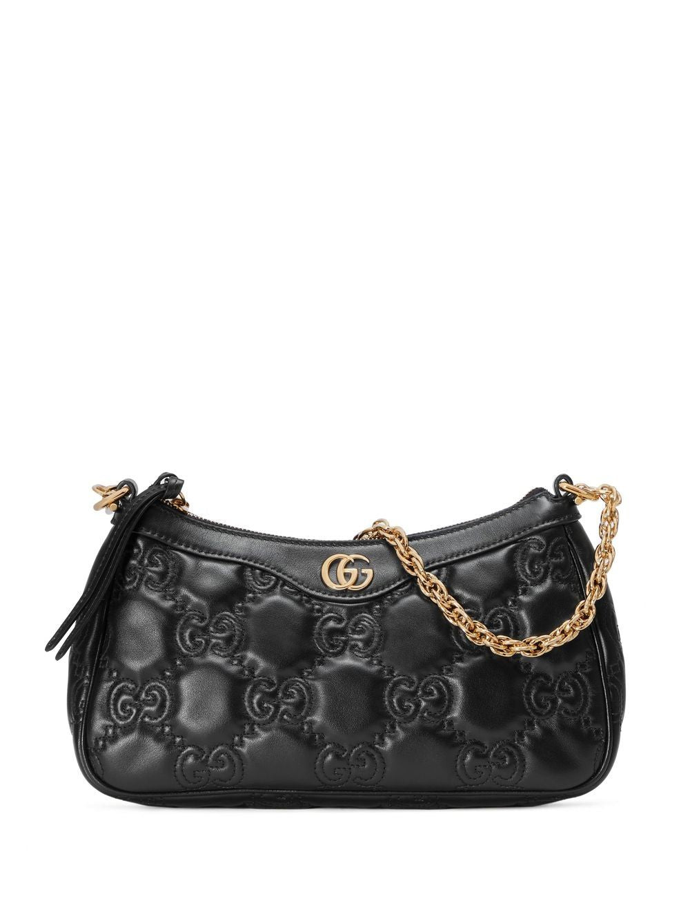 Crafted from super soft matelassé leather, this shoulder bag from Gucci boasts the House’s signature GG monogram pattern embossed all over. The timeless black piece is finished with the iconic double G logo to the front in polished gold-tone hardware, continuing the logo feel of the design.