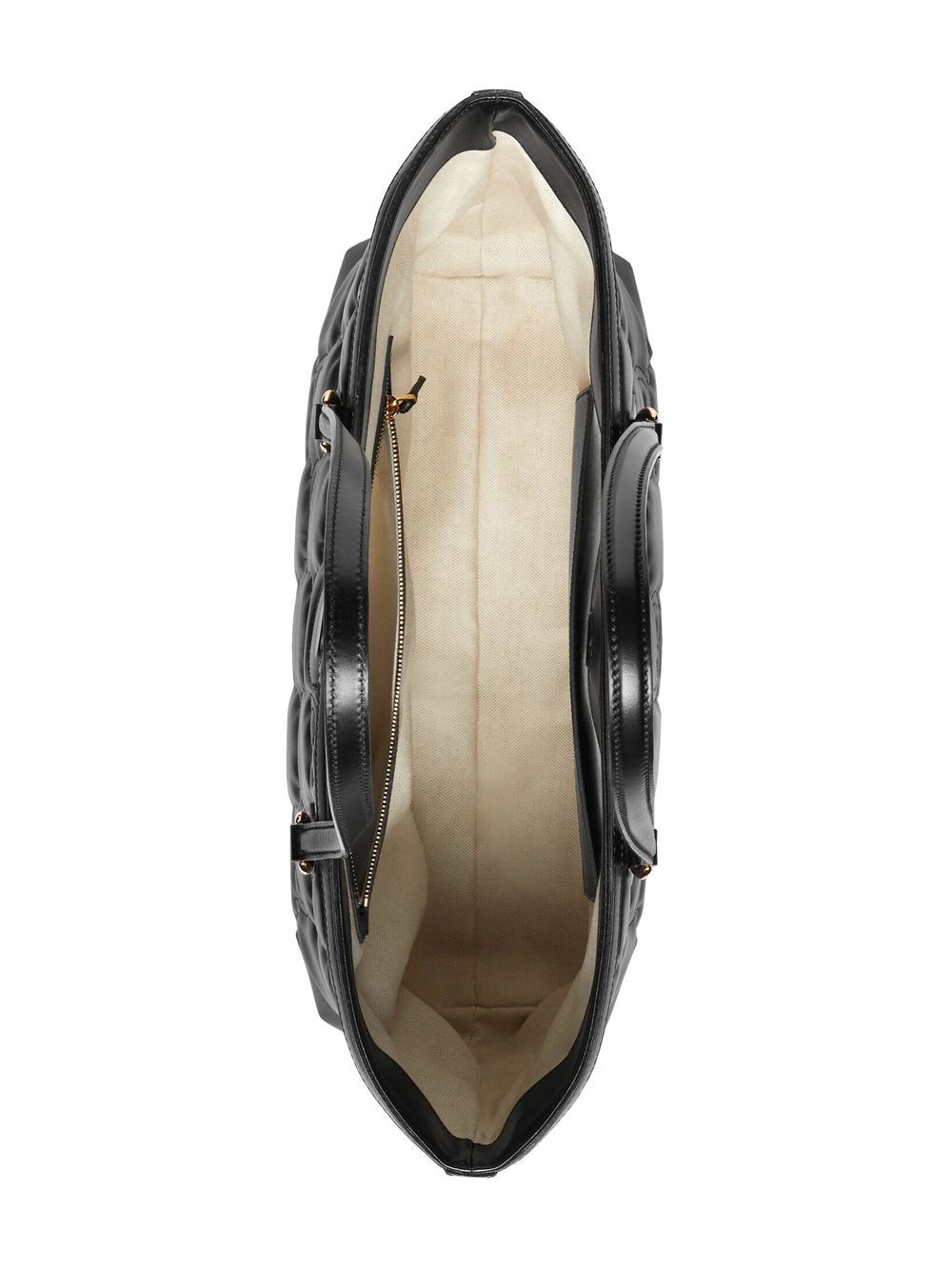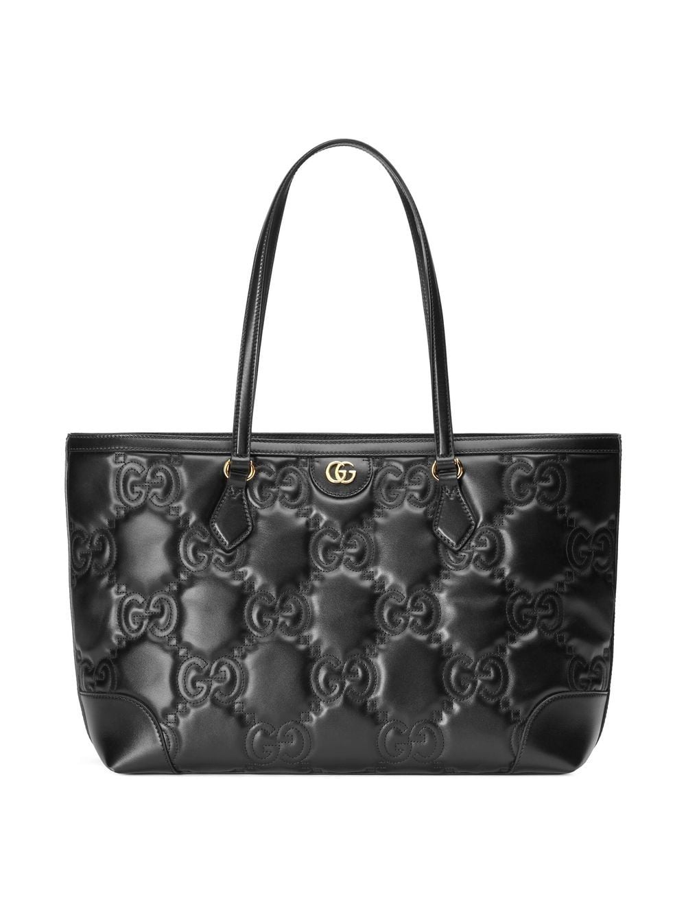 Channelling the logomania of the 90s, Gucci adapts its signature matelassé technique to add a textured branded element to this tote bag. The brand’s GG pattern appears quilted all over the accessory, complementing by the Double G logo plaque in a refined gold tone.