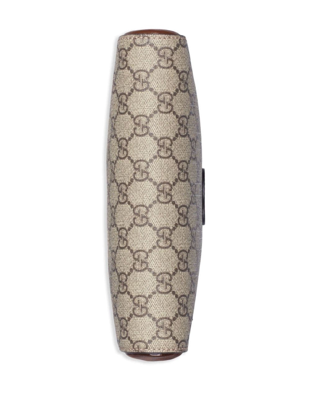 Defined by its compact silhouette, this Gucci messenger bag is decorated with the brand’s iconic GG Supreme print. Showcasing a brown leather trim, the classic design is complete with a leather logo patch to its front for a distinctly branded finish.