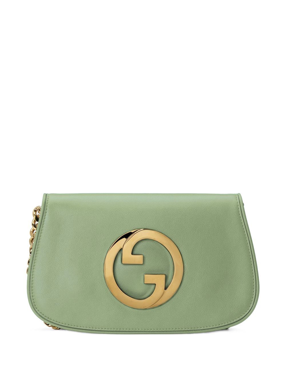 Gucci Blondie shoulder bag from Gucci featuring green, leather, gold-tone logo plaque, foldover top with magnetic fastening, adjustable detachable shoulder strap and main compartment.