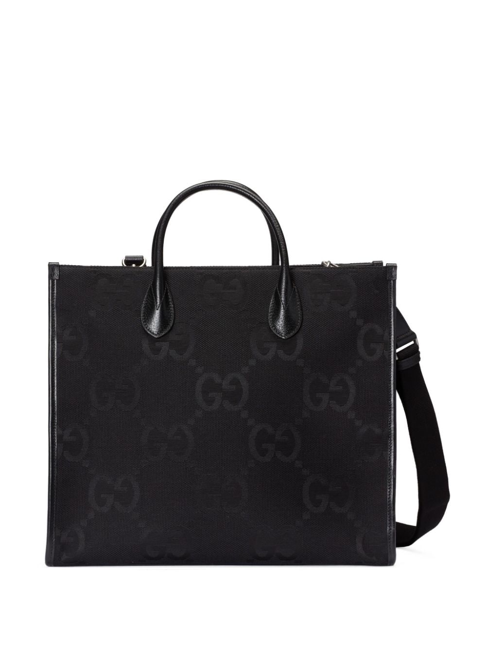Gucci’s iconic GG motif appears in a maximalist, jumbo-sized version atop this tote bag. The panelled design features two rounded top handles and an adjustable shoulder strap for added functionality.