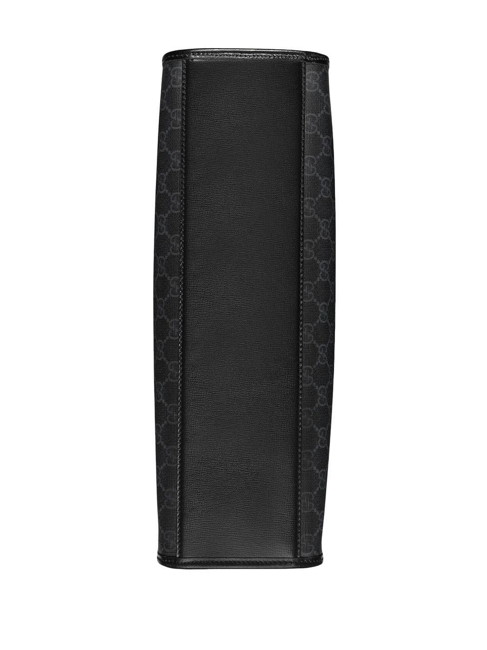 • Gucci’s distinctive Interlocking G emblem is one of the most symbolic codes of the Italian fashion House, as seen here on the centre of this medium tote bag. The GG Supreme canvas further adds to the logo-mania feel.