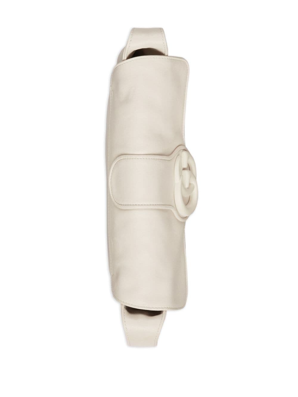 Gucci’s archival Aphrodite bag is reinvented in white leather. The downsized model is complete with the tonal Double G logo plaque on the front.