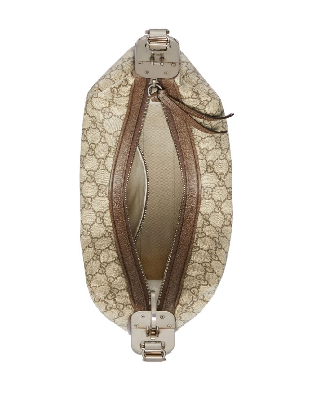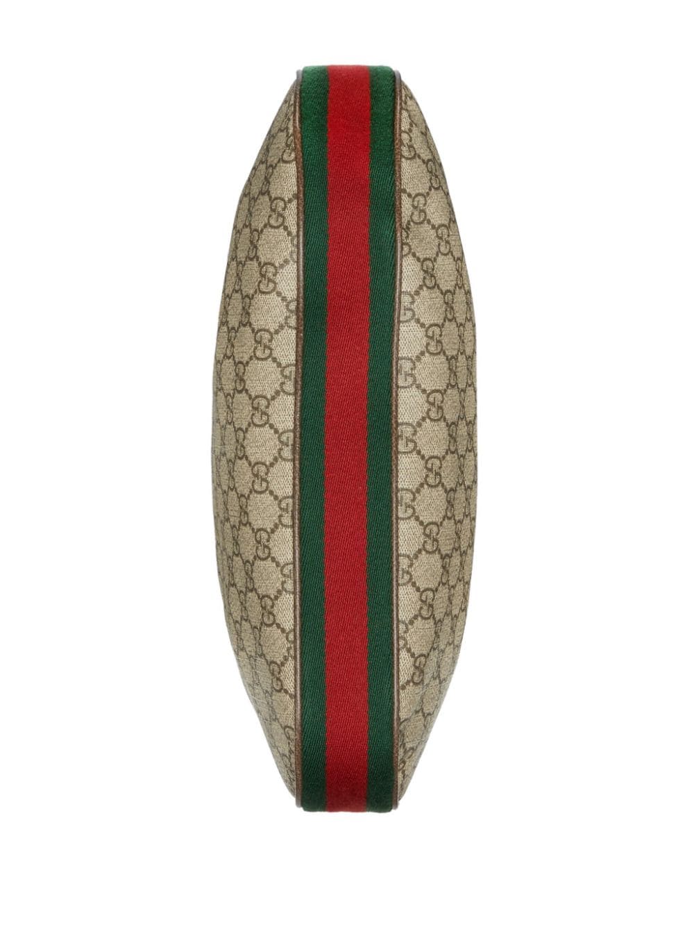 Contemporising established house codes, Gucci’s Attache bag is crafted from classic GG canvas to a crescent moon shape. The label’s signature Web stripe curves around its silhouette and acts as a shoulder strap.