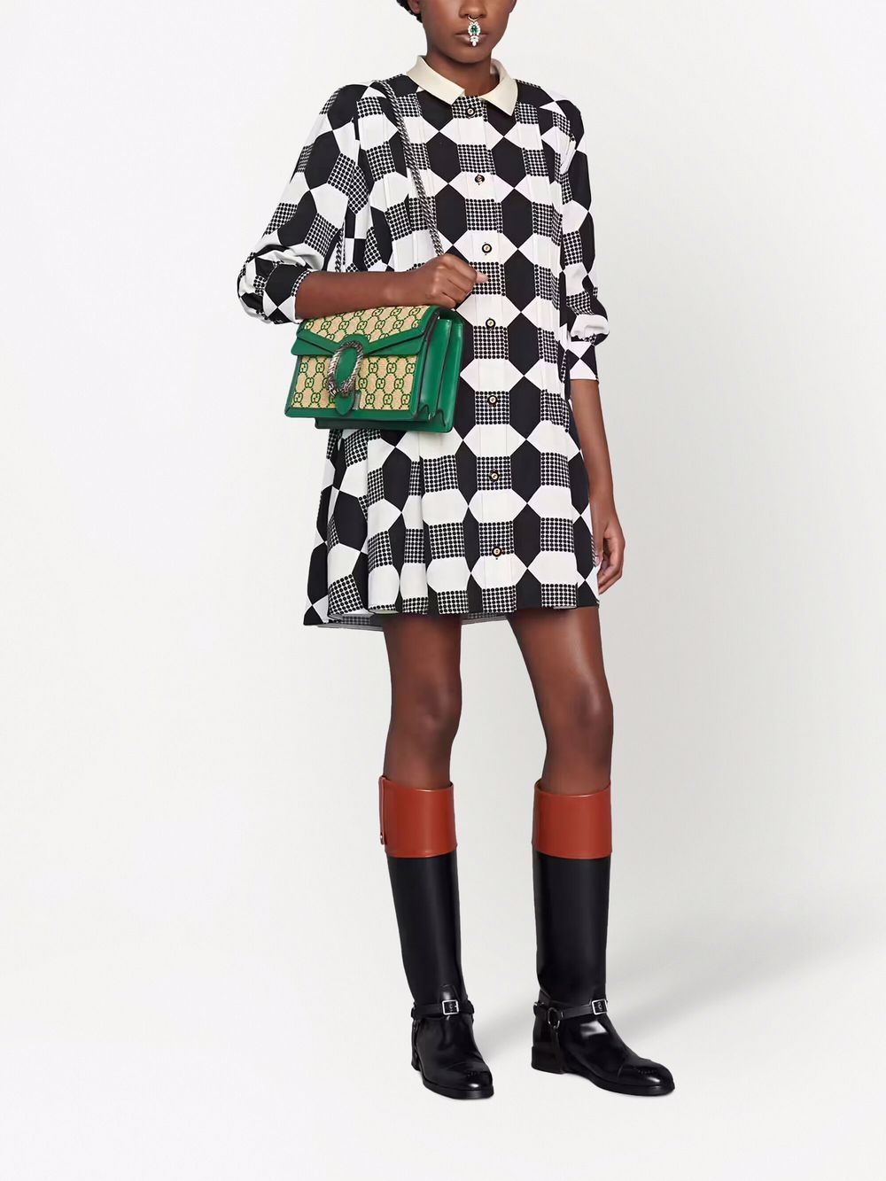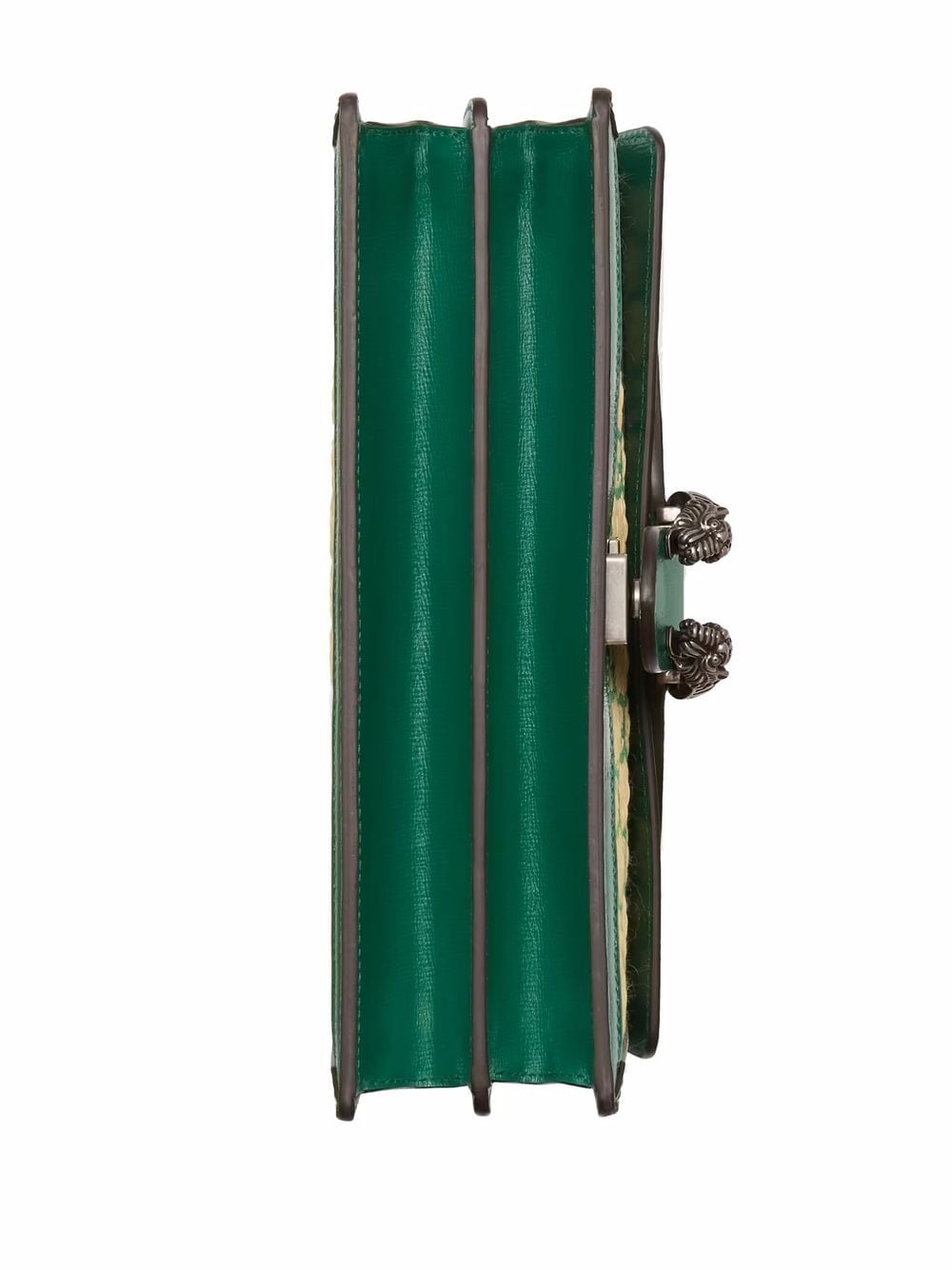 Under the helm of Alessandro Michele, Gucci’s Dionysus bag was released in 2015. Since its inception, it has become an iconic Gucci staple. This iteration is presented with an emerald green colourway accenting the GG canvas, reinvigorating the accessory for SS22.