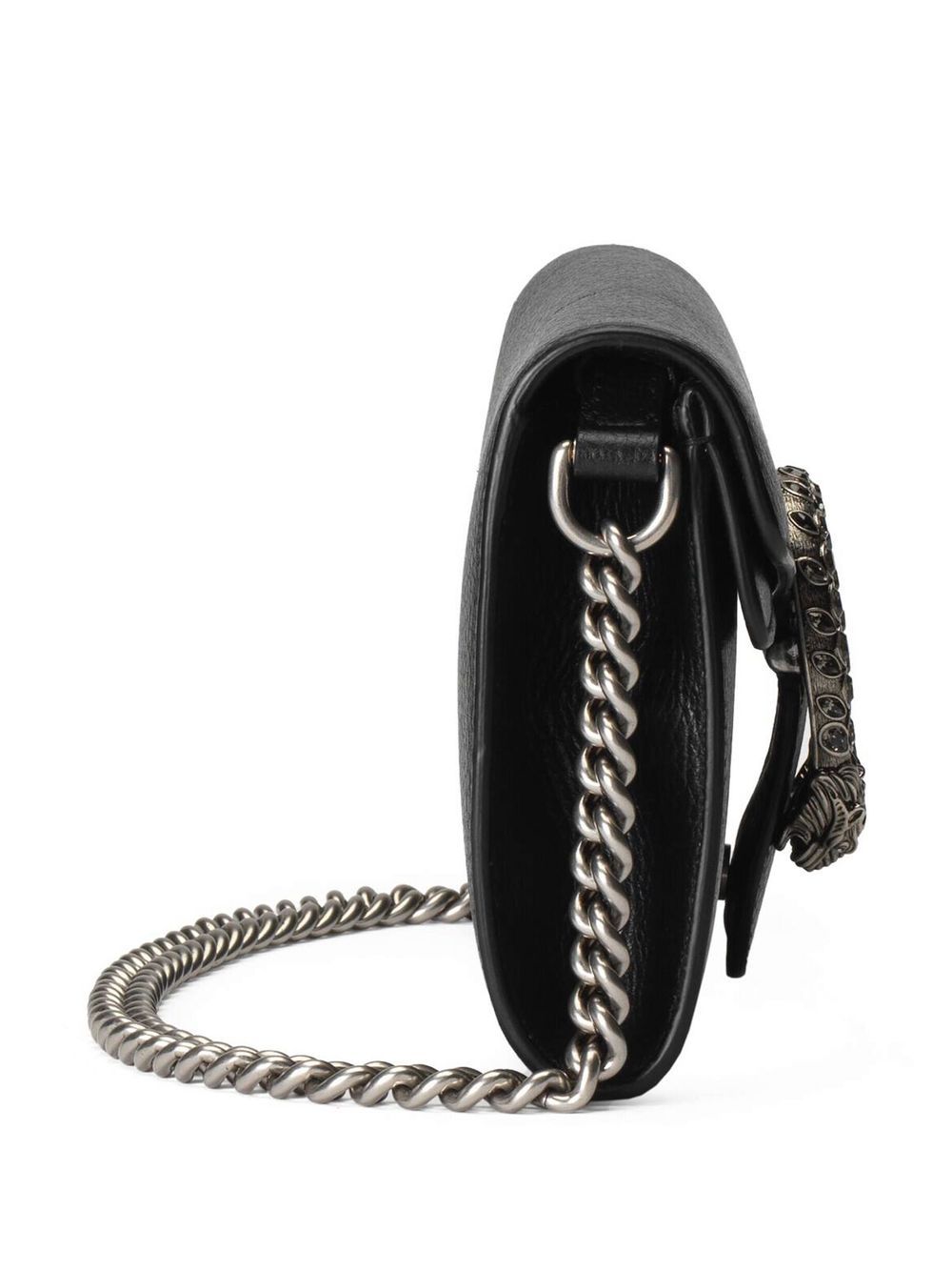 First introduced to the collection in 2015, Gucci’s Dionysus shoulder bag became one of the brand’s most covetable styles, defined by its curved clasp closure shaped into a tiger’s head. With it since being reiterated in a variety of shapes and colours, the motif proudly adorns this small version for SS23, accompanied by a stud-embellished detachable logo strap for added notability.