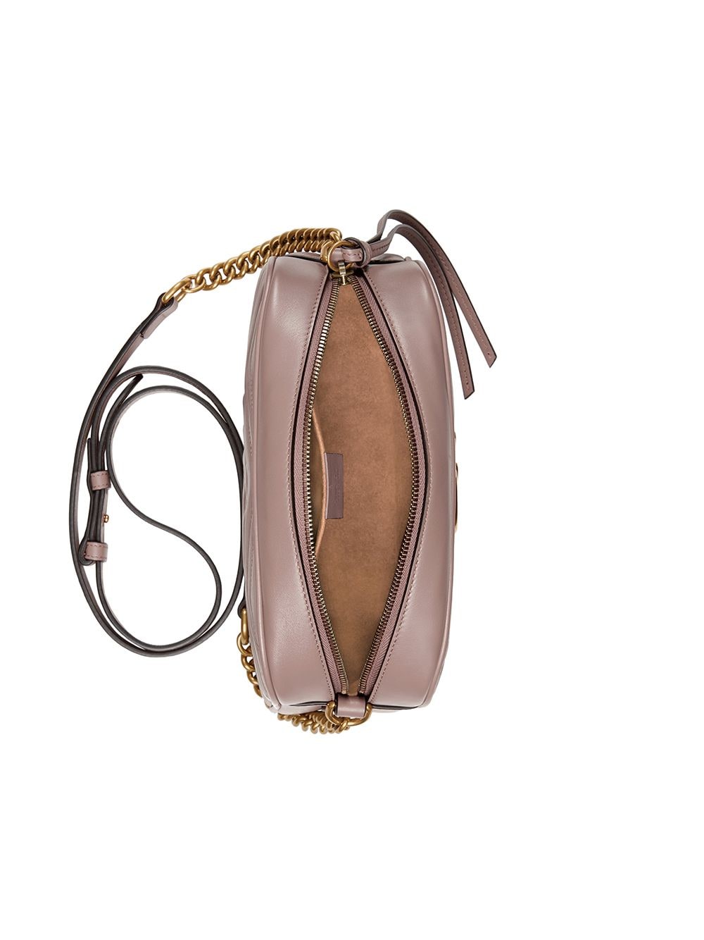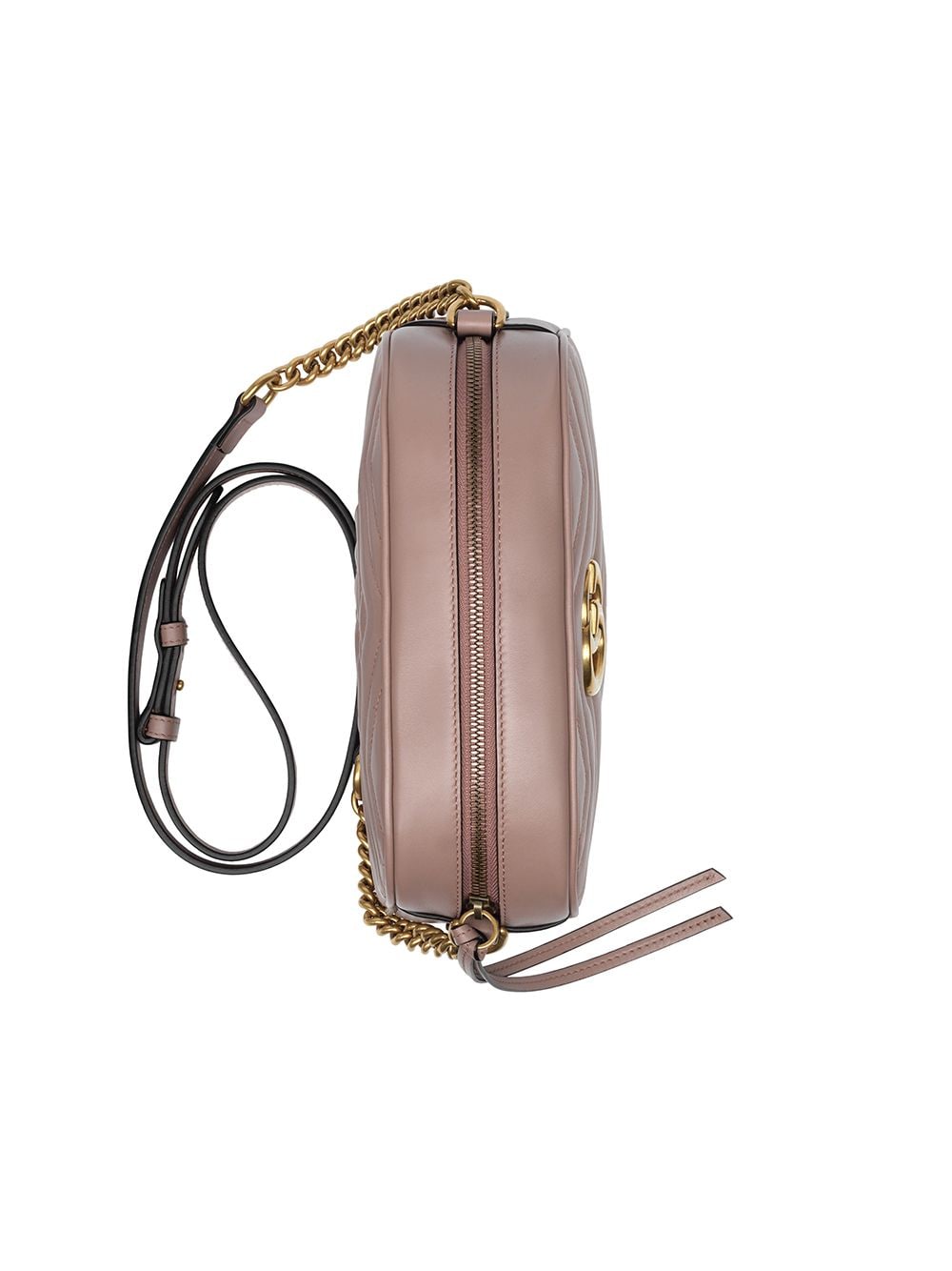 Gucci brings a new definition to luxury in the 21st century. The label is renowned for their expert Italian craftsmanship, attention to detail and romantic aesthetic. Crafted from leather, this dusty pink small GG Marmont matelassé shoulder bag from Gucci features an adjustable chain and leather shoulder strap, a top zip fastening, antique gold-tone hardware, a double G detail, an internal slip pocket and a matelassé chevron design with GG to the back.
