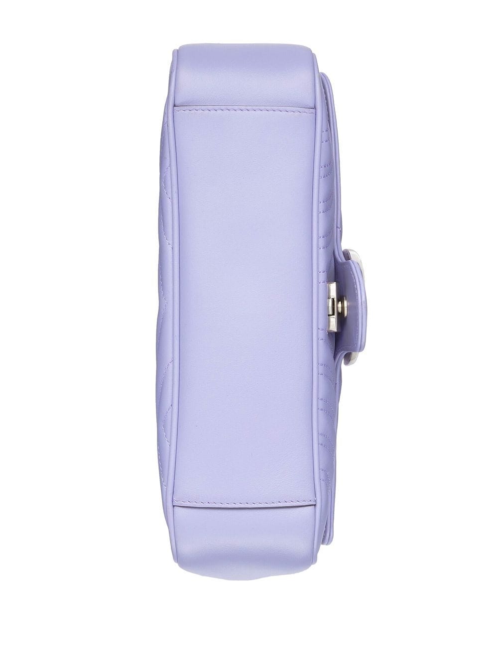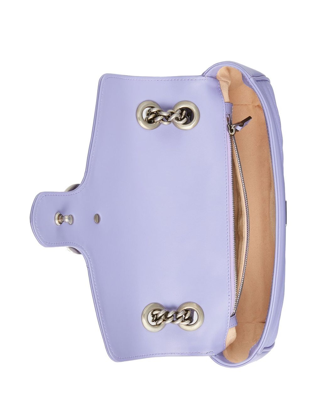 Taken from the House’s ’70s archives, Gucci’s Double G logo represents the initials of the brand’s founder, Guccio Gucci. A key feature of the brand’s designs, this detail takes on many different iterations and is showcased in silver-tone hardware at the front of this lavender purple small GG Marmont shoulder bag.