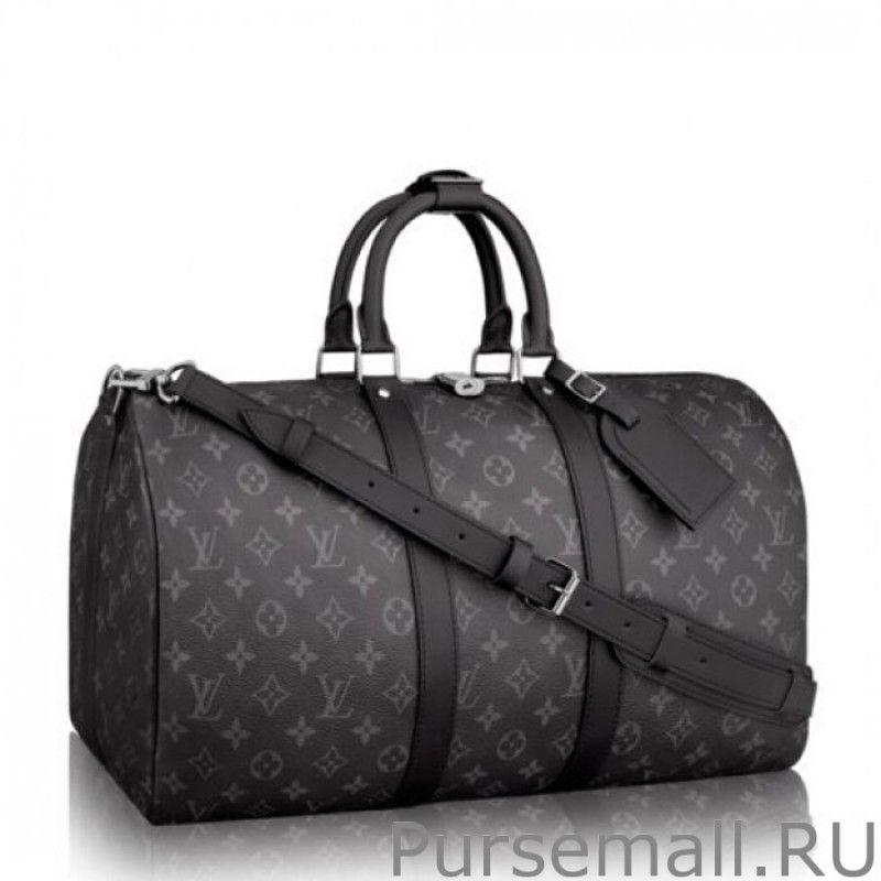 This iconic Keepall 45 Bandoulière is fashioned in our new iconic black and grey Monogram Eclipse canvas. Since 1930, the Keepall duffle has journeyed alongside generations of elegant globetrotters. This version – with comfortable-to-hold leather handles, a strap for casual cross-body wear and a gleaming padlock – holds all the essentials for an overnight jaunt.
