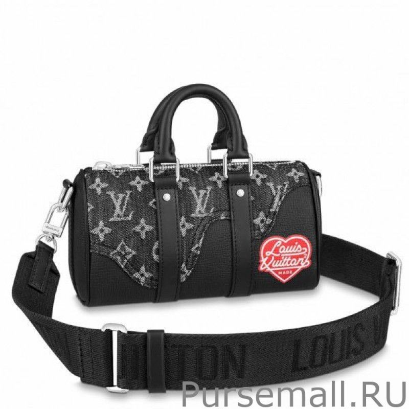 The mini version of the classic Keepall comes with an imaginative twist for PreSpring 2022: the Monogram Drip look by the Japanese streetwear designer Nigo. Louis Vuitton’s historic Monogram pattern on streetwise black denim is paired with supple Taurillon leather in deep, elegant black. A vibrant red heart adds a colorful signature to this stylish, practical city bag.