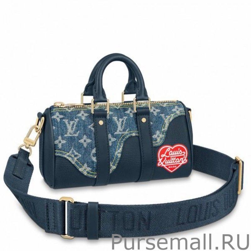 The mini version of the classic Keepall comes with an imaginative twist for PreSpring 2022: the Monogram Drip look by the Japanese streetwear designer Nigo. Louis Vuitton’s historic Monogram pattern on cool blue denim is paired with supple Taurillon leather in elegant navy blue. A vibrant red heart adds a colorful signature to this stylish, practical city bag.