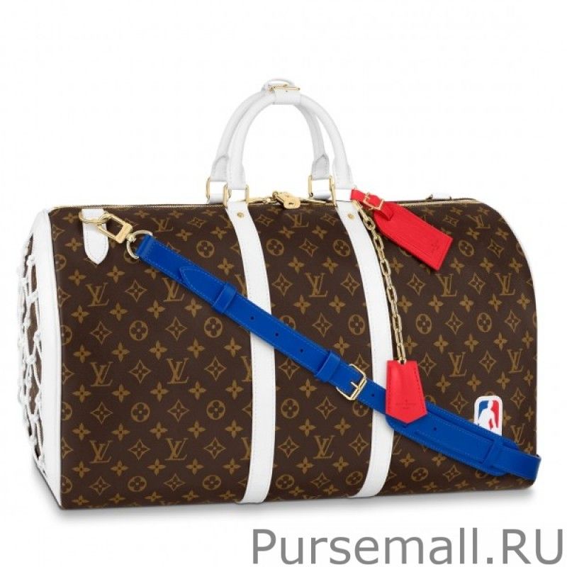 The Basketball Keepall takes the House iconic soft travel bag onto the court. With an inside strap to hold a basketball, this Keepall has a flap system that reveals the ball behind a mesh net when opened. The distinctive colors and lines of the NBA logo inspired Virgil Abloh in the redesign of this classic.