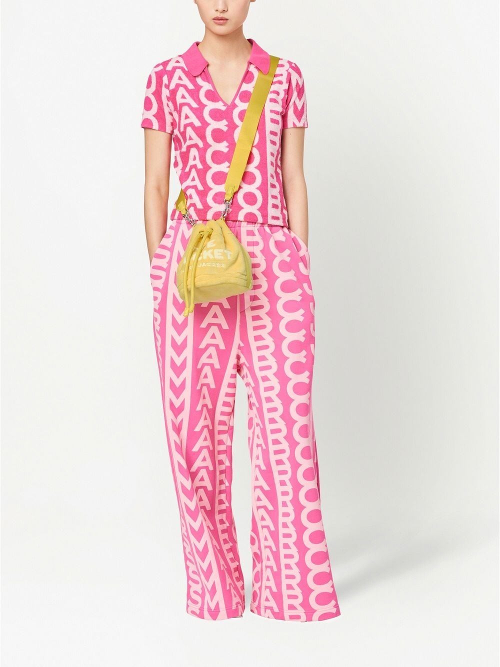 The Terry bucket bag from Marc Jacobs featuring yellow, terry-cloth effect, slogan print, drawstring fastening, main compartment, internal zip-fastening pocket and adjustable detachable shoulder strap.