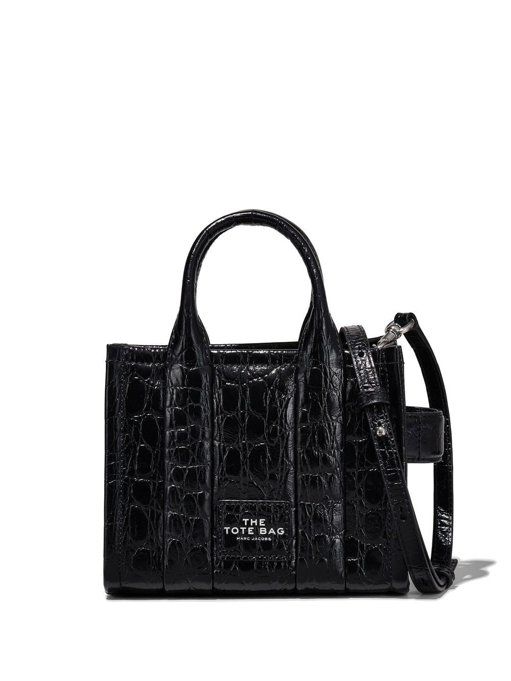 • The smallest of the Marc Jacobs Tote Bag collection, the micro versio is designed to fit all phones and finished with a croc-like finish. Wear it with the crossbody strap or carry it by the looped handles.