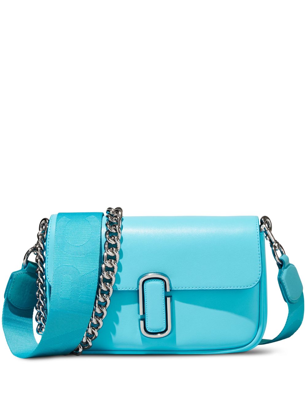 Defined by its instantly recognisable logo plaque at the centre, Marc Jacobs’ The Leather shoulder bag is reimagined for AW23 in a pool blue colour. Made from smooth leather, the accessory benefits from two detachable shoulder straps — a chain-link and a webbed one —, allowing it to be worn in multiple ways.