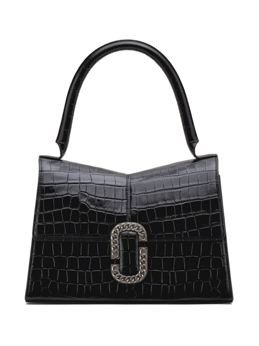 • A signature style, The St. Marc tote bag by Marc Jacobs is back for the new season in black. Crafted from croc-embossed leather, this model is defined by an ‘M’ shape adorned by a chain link J Marc hardware at the front.