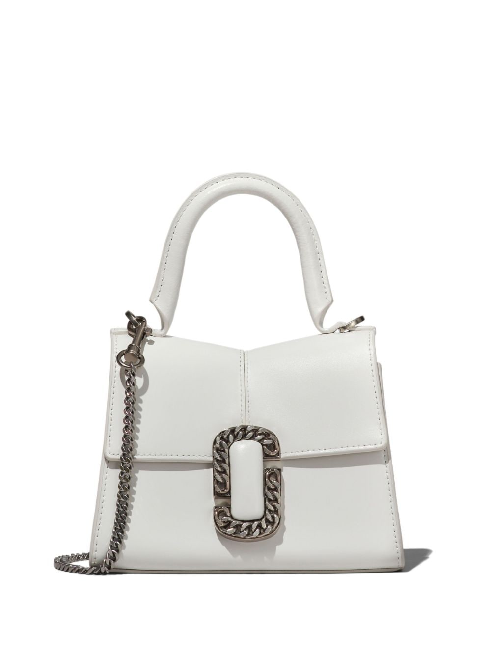 Presented in a white colourway, this bag by Marc Jacobs is punctuated with the signature logo plaque in a chain-link iteration. It benefits from a foldover top and a detachable chain-link shoulder strap so that it can be used as a tote or crossbody bag.