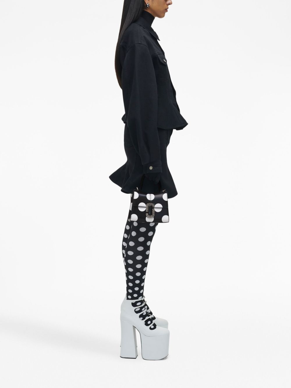 Designed in an ‘M’ shape and adorned with a chain-link ‘J’ clasp, The St. Marc mini bag embodies Marc Jacobs’ sophisticated branding. Its trapeze silhouette is elevated by the seasonal polka dot print, while a detachable shoulder strap adds a convenient touch.