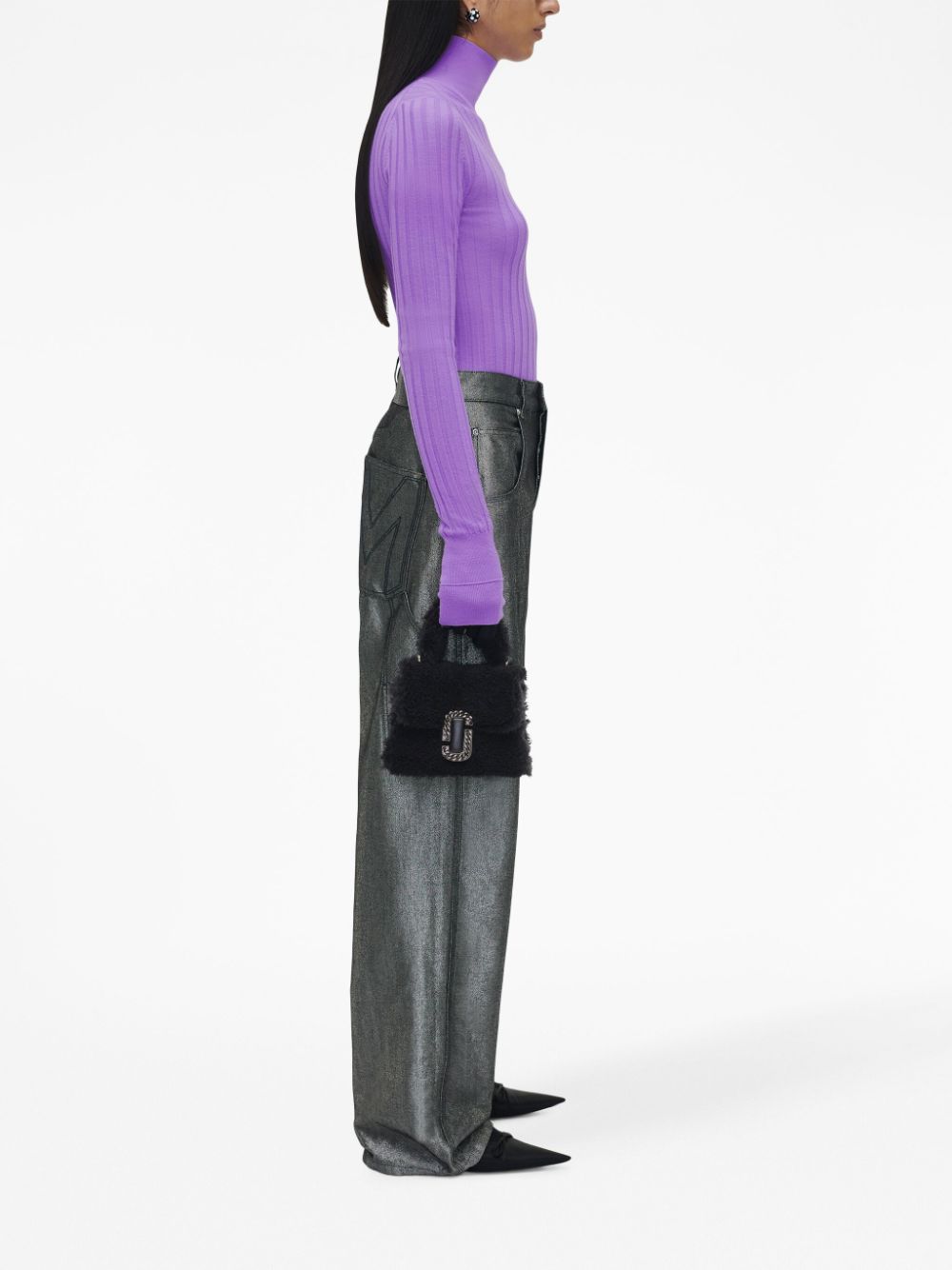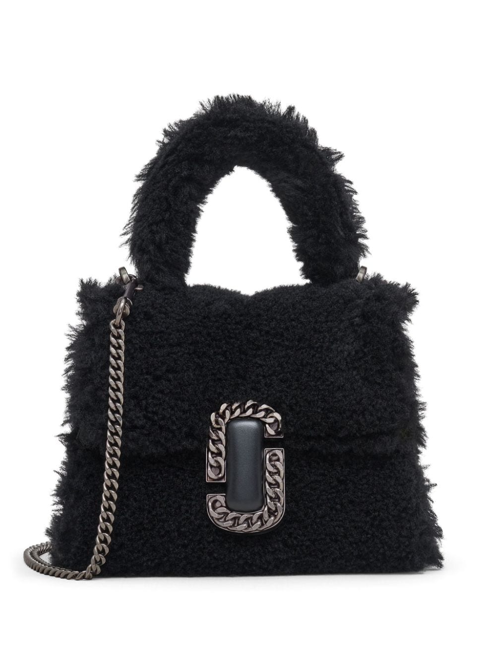 Presented in black, this teddy bag is adorned with the recognisable J Marc push-lock fastening at the front. The fluffy accessory benefits from a detachable chain-link strap that allows it to be worn on the shoulder or handheld.