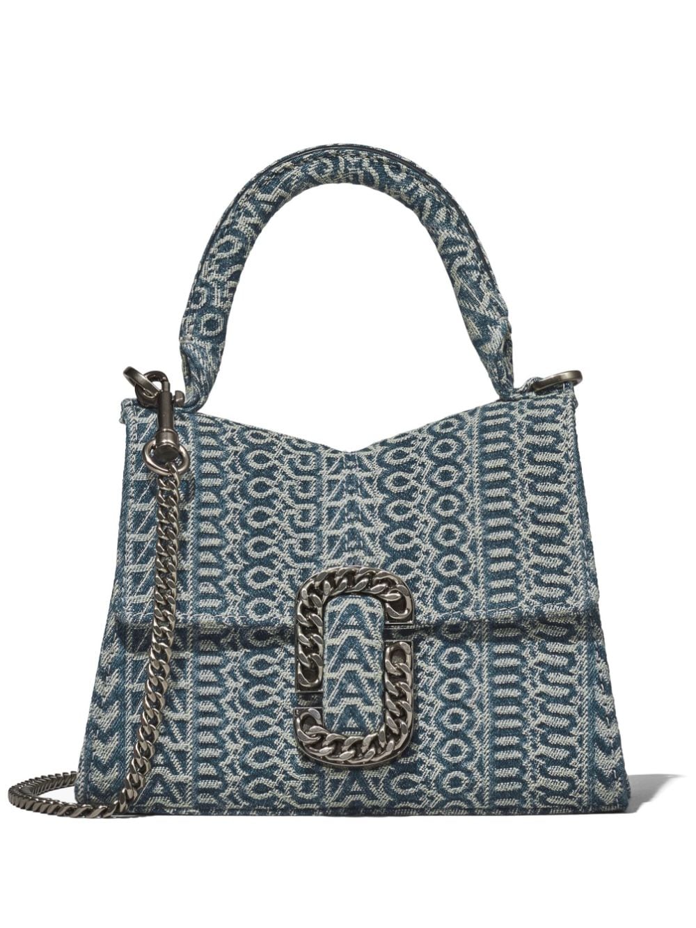 Instantly recognisable thanks to the monogram jacquard all over and the iconic Double J plaque at the front, this Marc Jacobs arrives in a blue canvas iteration. It can be carried by the top handle or on the shoulder with the chain-link strap.