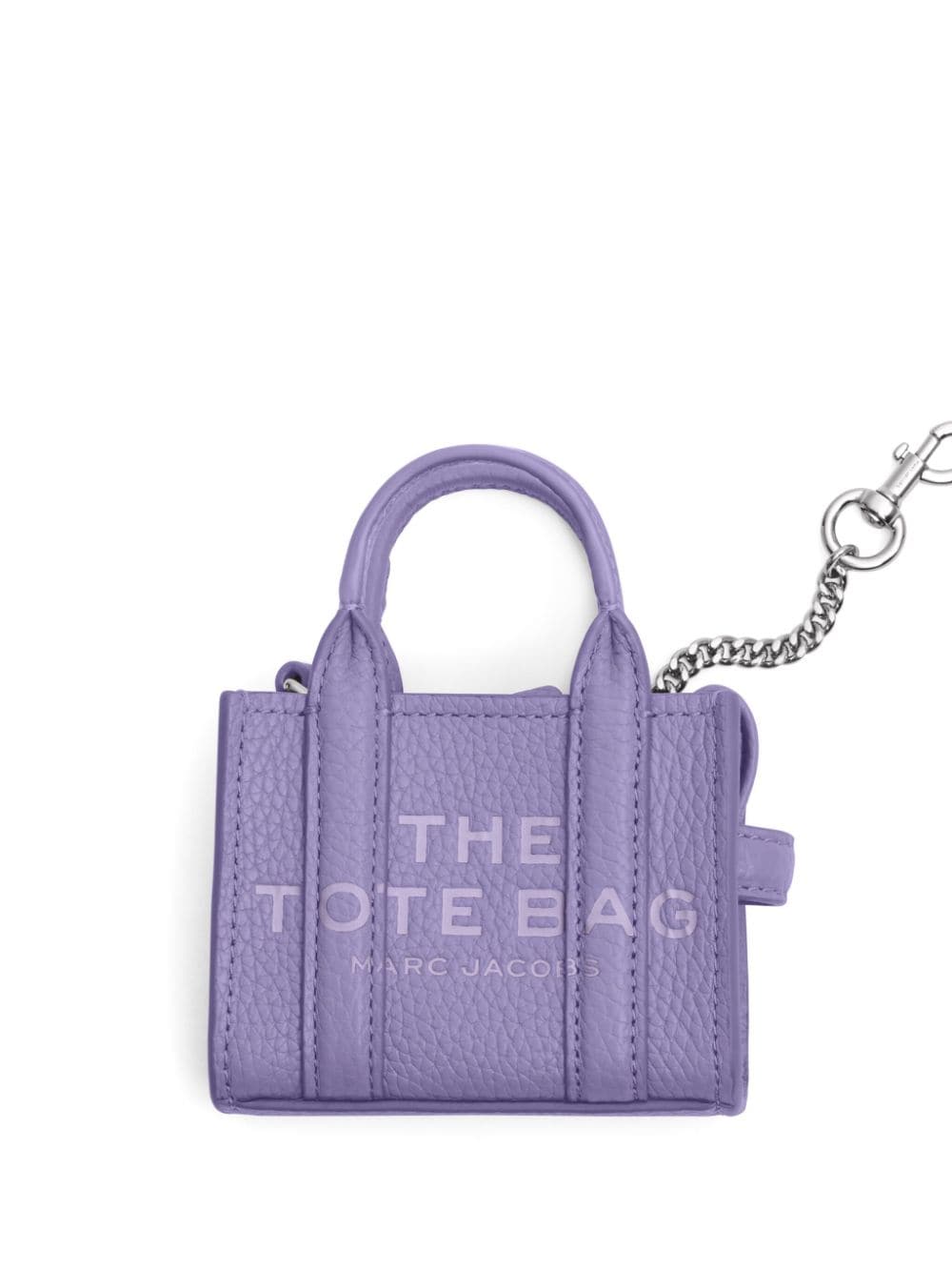 Marc Jacobs reimagines its classic Tote bag as a whimsical charm with this leather Nano iteration. It’s suspended by a silver-tone clasp and retains the same boxy silhouette, complete with a logo stamp at the front.